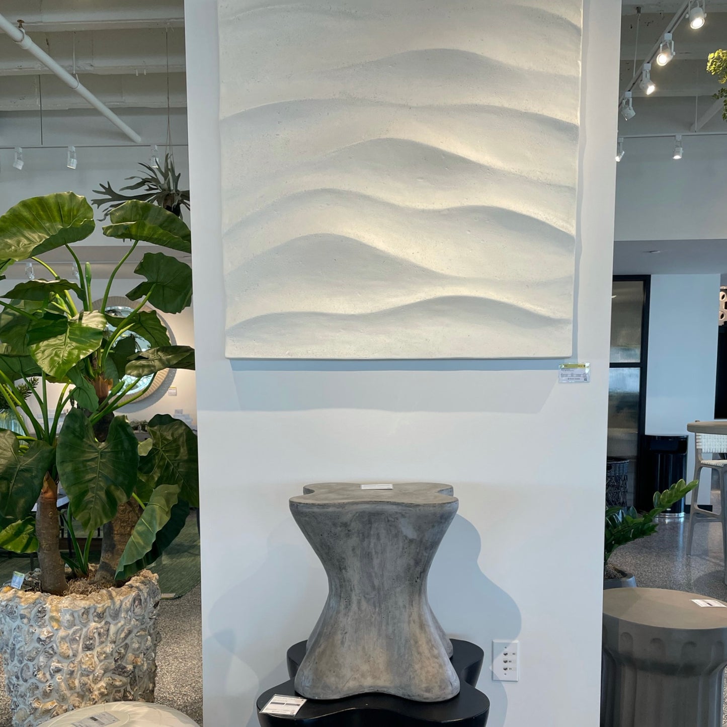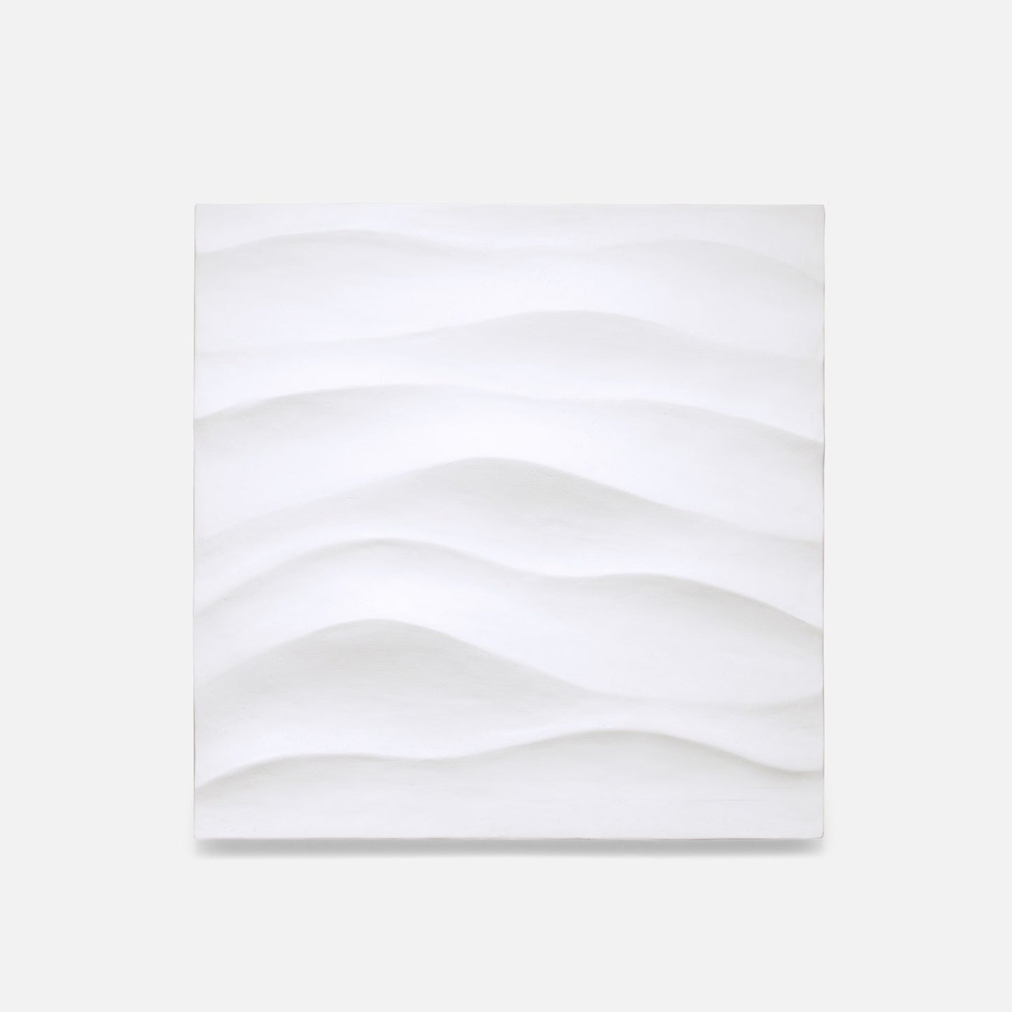 The Janhu Artwork from Made Goods is made of white cast-stone that evokes the form and tranquility of softly rippling water. This unique piece of square wall art creates a calming vibe displayed individually in an entryway or office or as part of a collection of wall art for a gallery-like feel in your space.