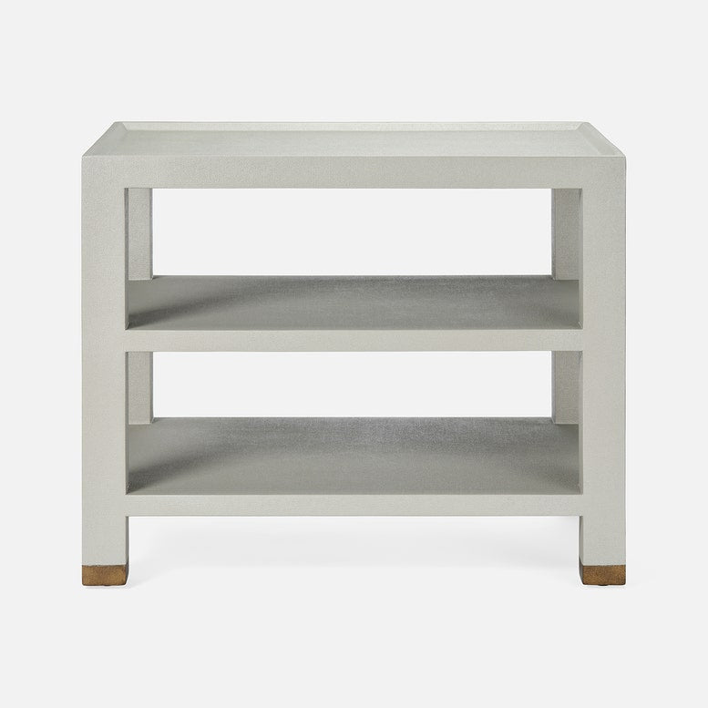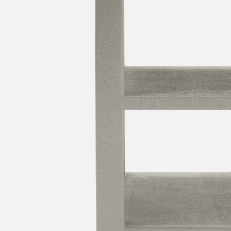 Elevate any space with the Jarin Side Table in Light Gray Faux Belgian Linen from Made Goods. The brass detailing plays off of the light gray faux Belgian linen material adding a surprise element to this design.