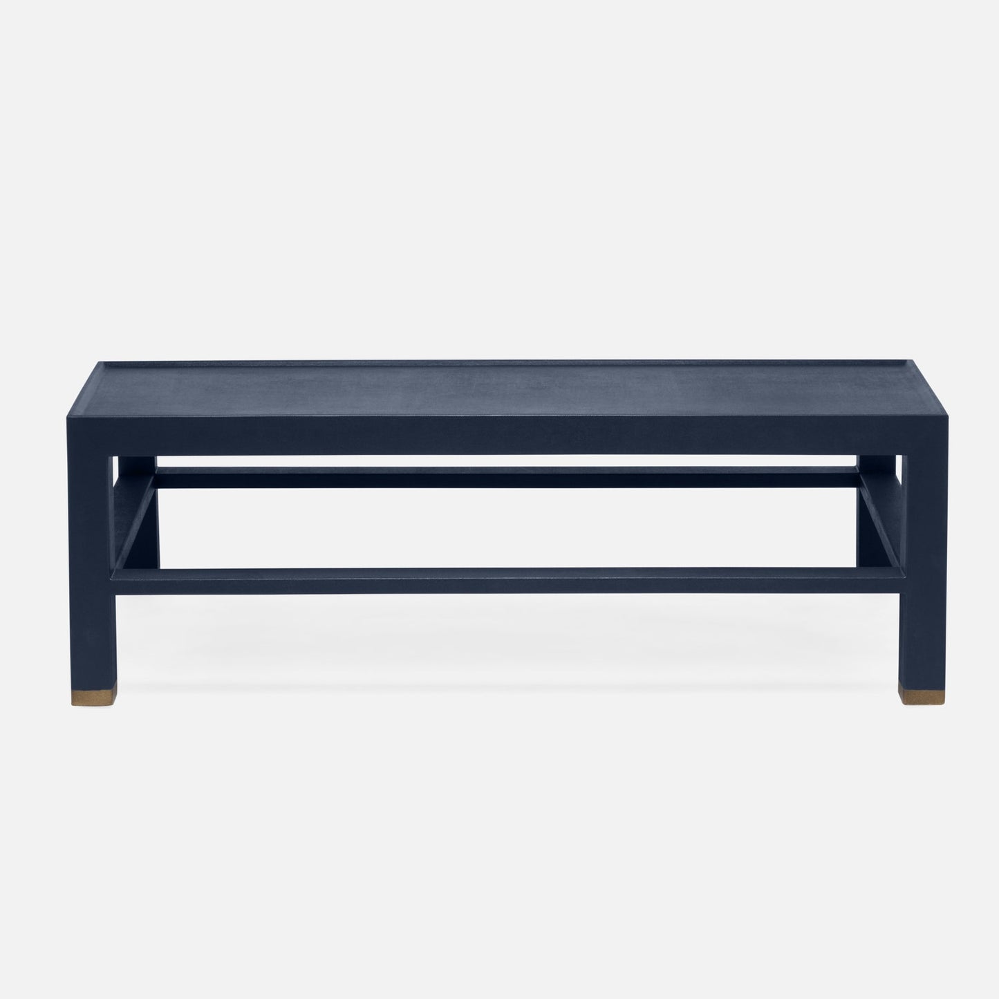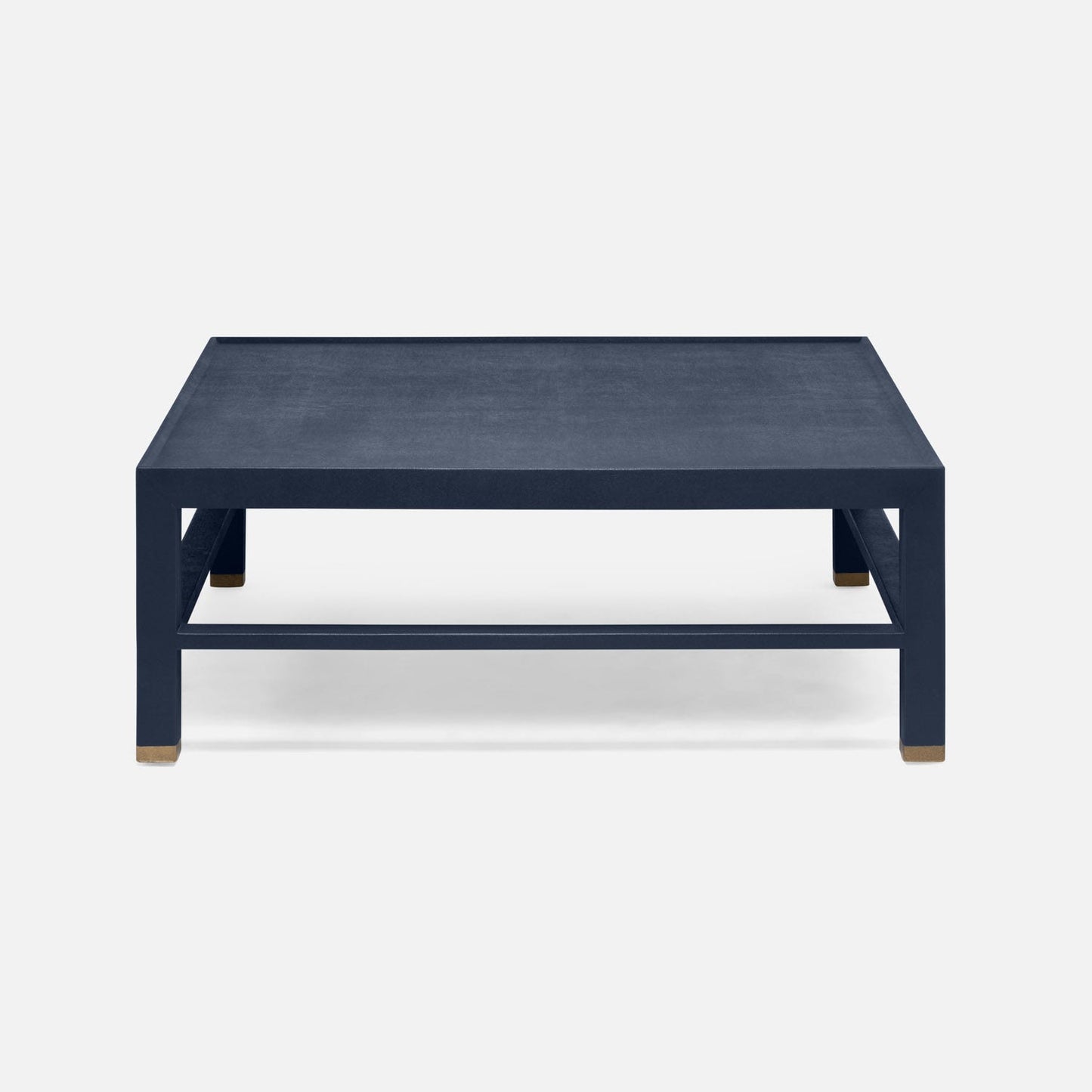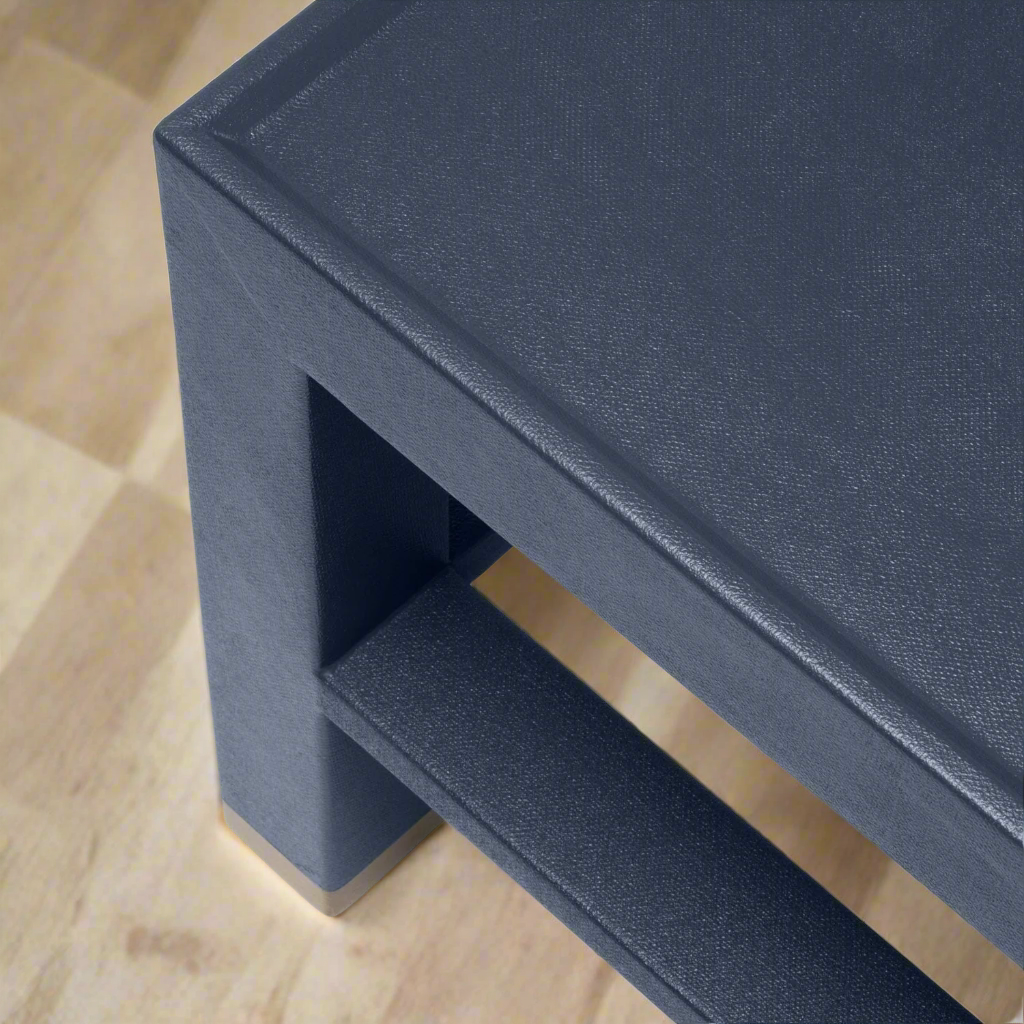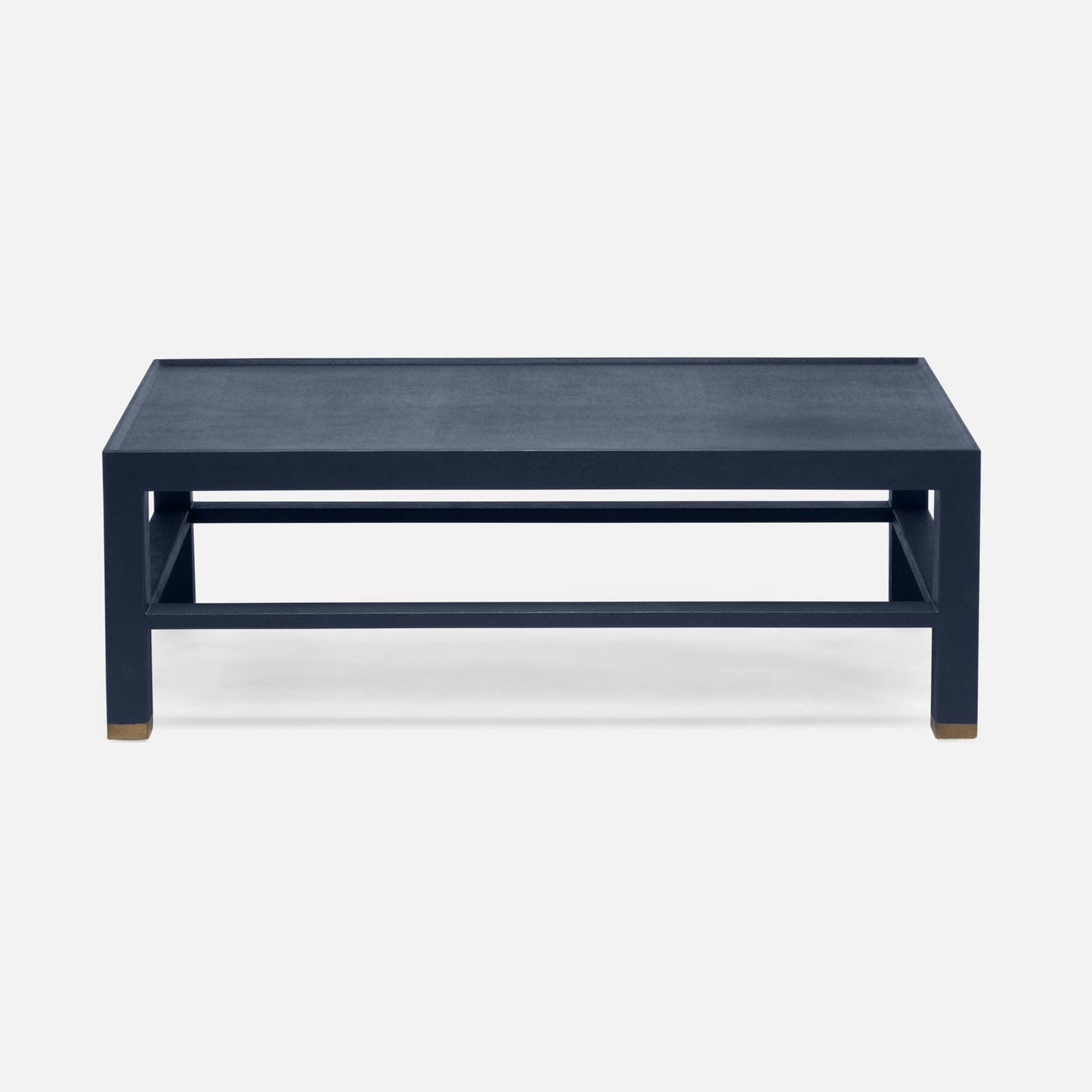 Elevate your space with The Jarin Coffee Table in Dark Navy Faux Belgian Linen from Made Goods. The substantial Jarin is fully finished in true navy faux Belgian linen, highlighting the material's texture and sheen with a simple shape. A great lip element around the top surface is only one of the piece's many considered details.