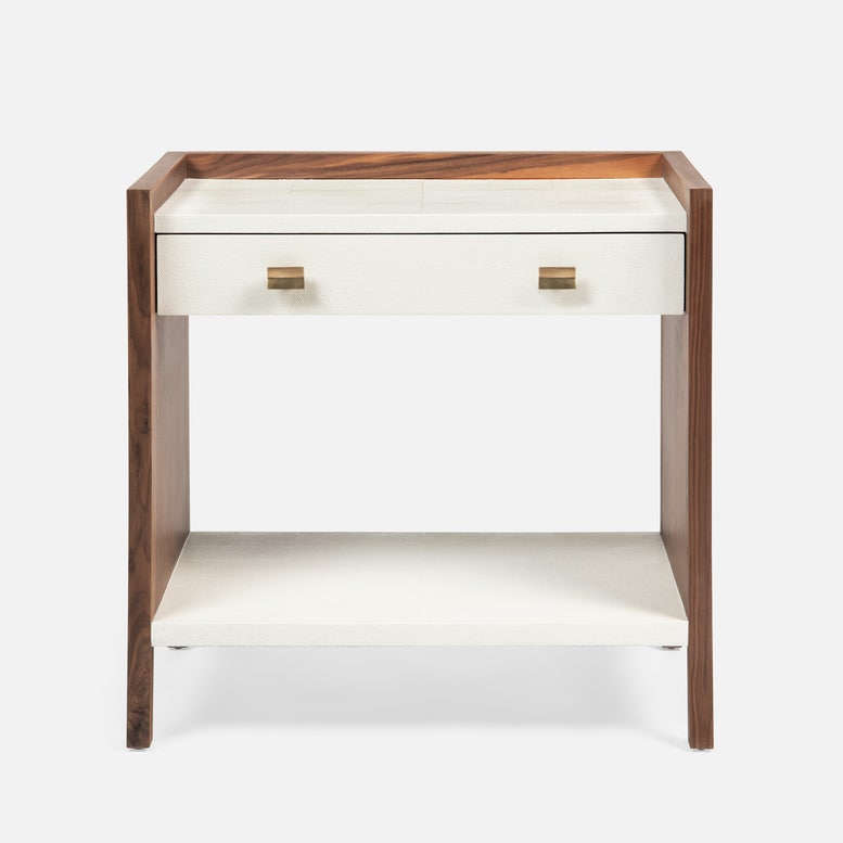Kennedy Double Nightstand Pristine Vintage Faux Shagreen and Walnut Veneer