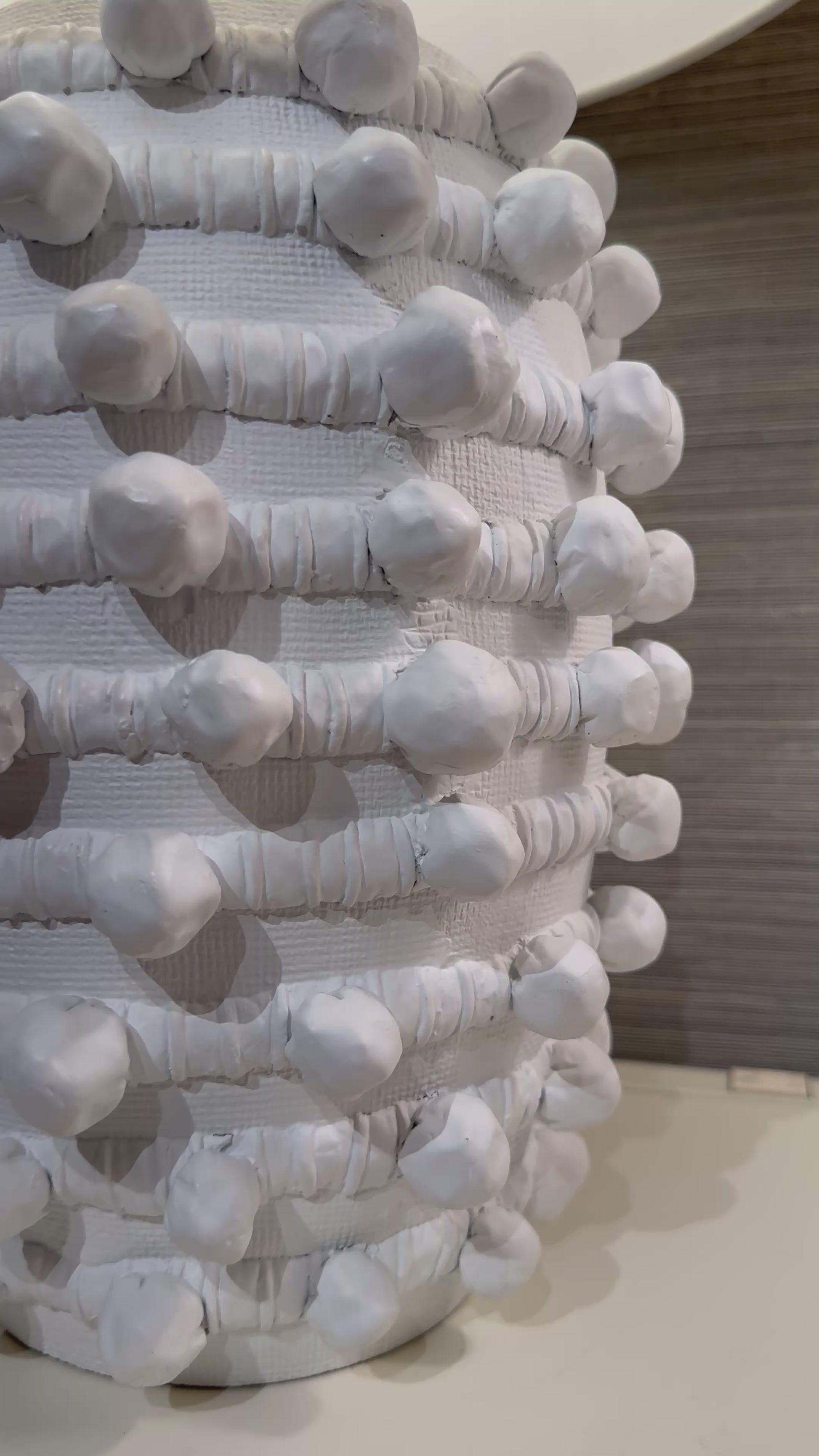 Constructed from a textured resin, the Leah Table Lamp in Matte White Resin by Made Goods features unique circular rows and a distinctive design.
