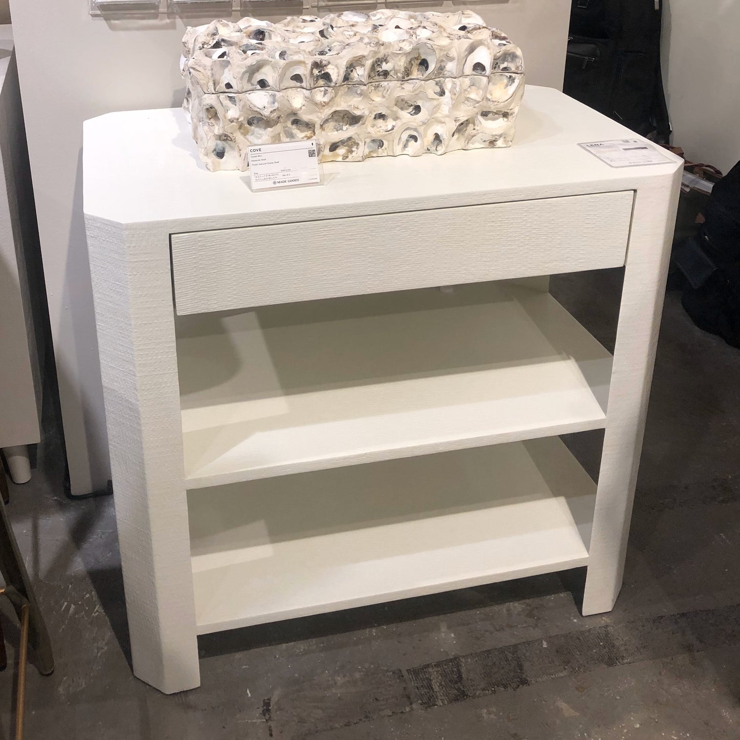 Pristine Faux Raffia; 2 Shelves; Self-Closing Drawer
