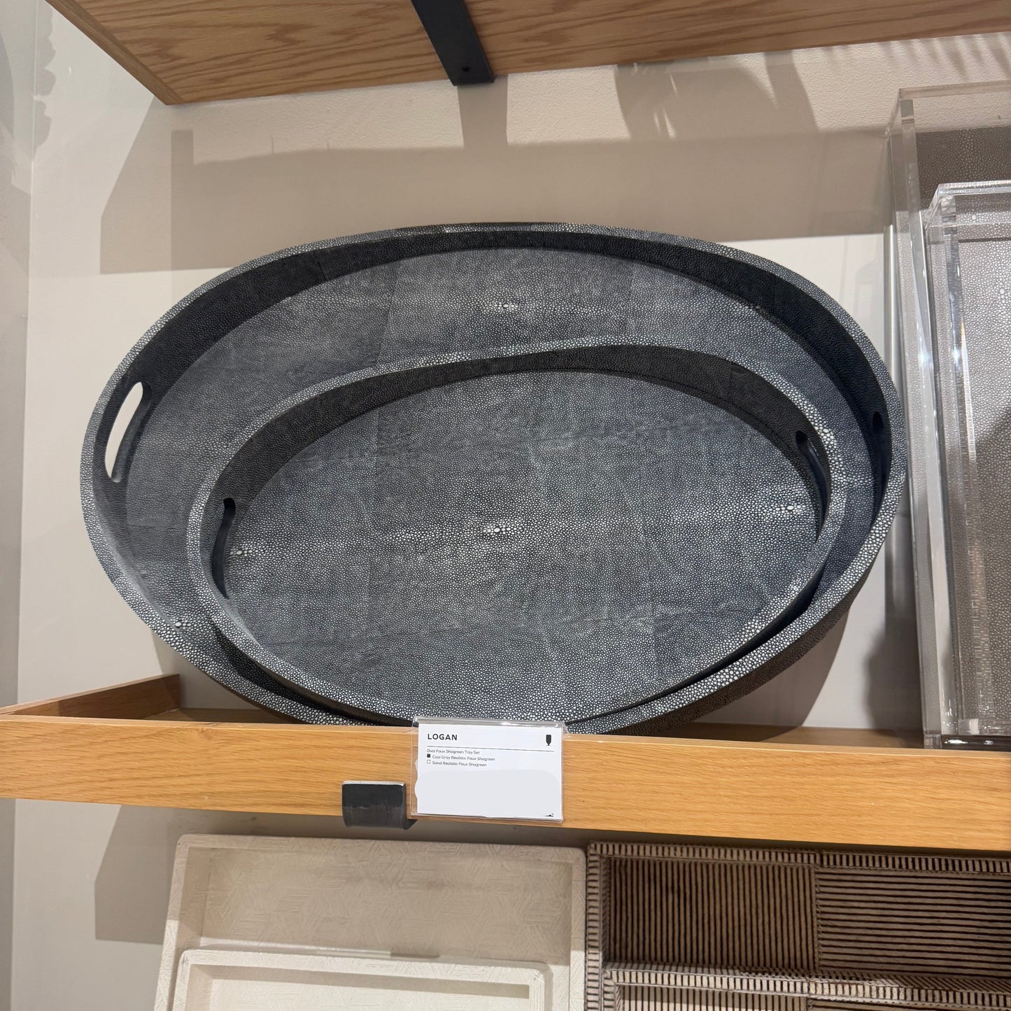 Logan Tray Set Cool Gray Faux Shagreen