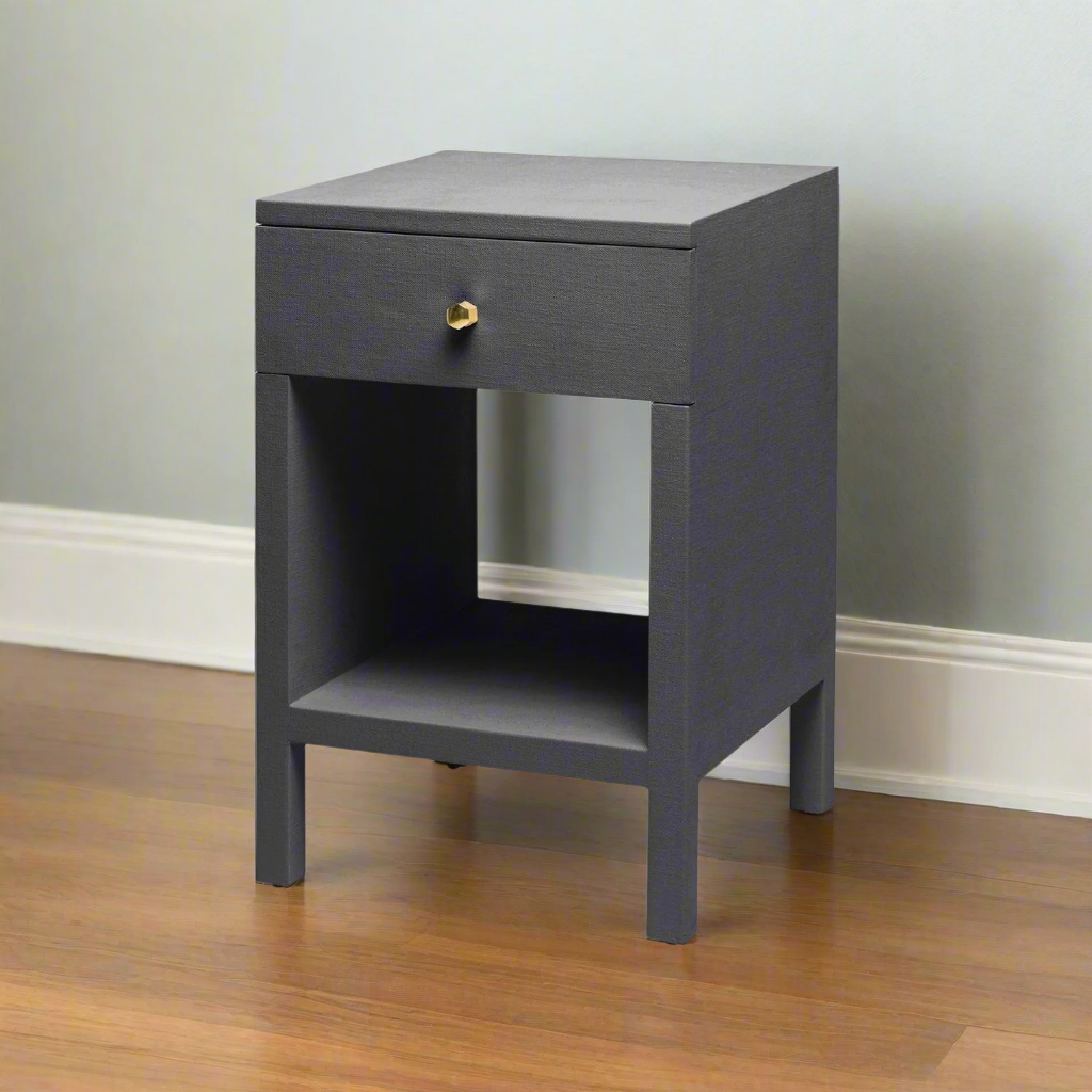 Maris Single Nightstand Dark Navy Faux Belgian Linen