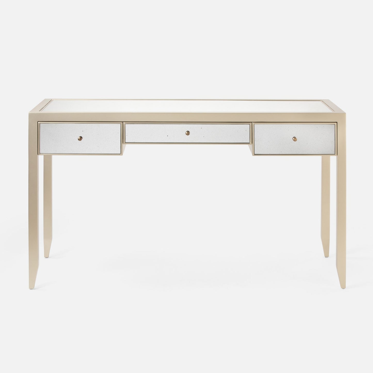 The Mia Desk in Palladian Silver Oak from Made Goods has been treated to look like unpolished sterling silver capturing a warm, soft finish. This ultra feminine piece will bring glamour to your room.