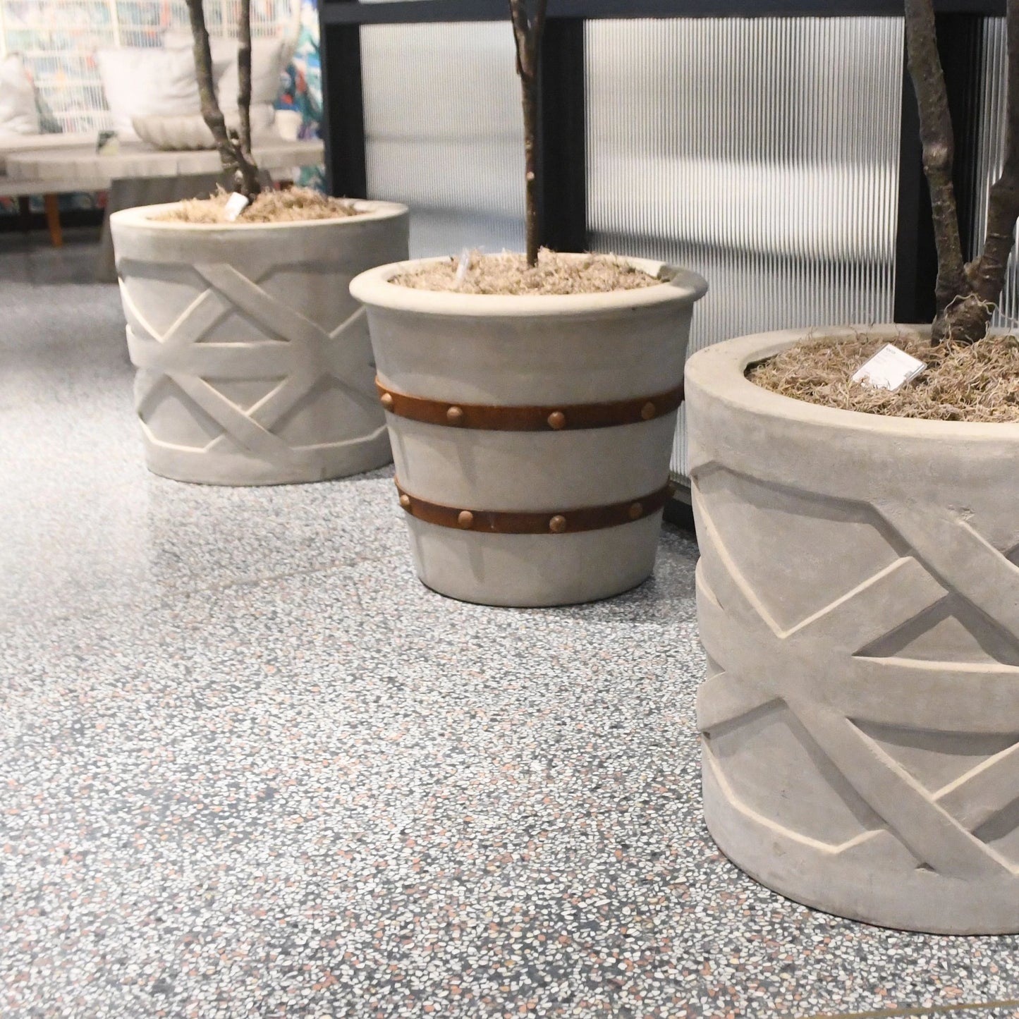 The Newton Pot in Reconstituted Stone by Made Goods is made from high-quality natural materials that are weather resistant. This handmade planter is designed to withstand various elements and temperature changes. Its large size and dimensional strap detailing make it a stunning addition to any outdoor setting.