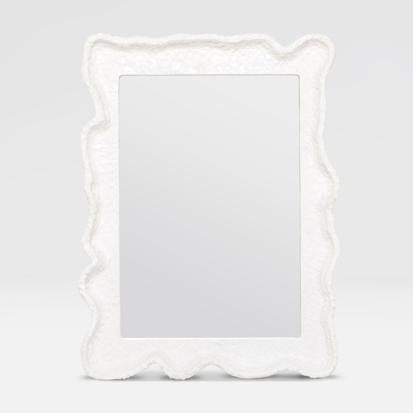 The curvy, modern Nora Mirror from Made Goods evokes a retro-future feel, this white resin mirror has a bit of gloss and plenty of texture to complement its unique silhouette. The Nora's abstract shape adds an element of surrealism to this playful piece.