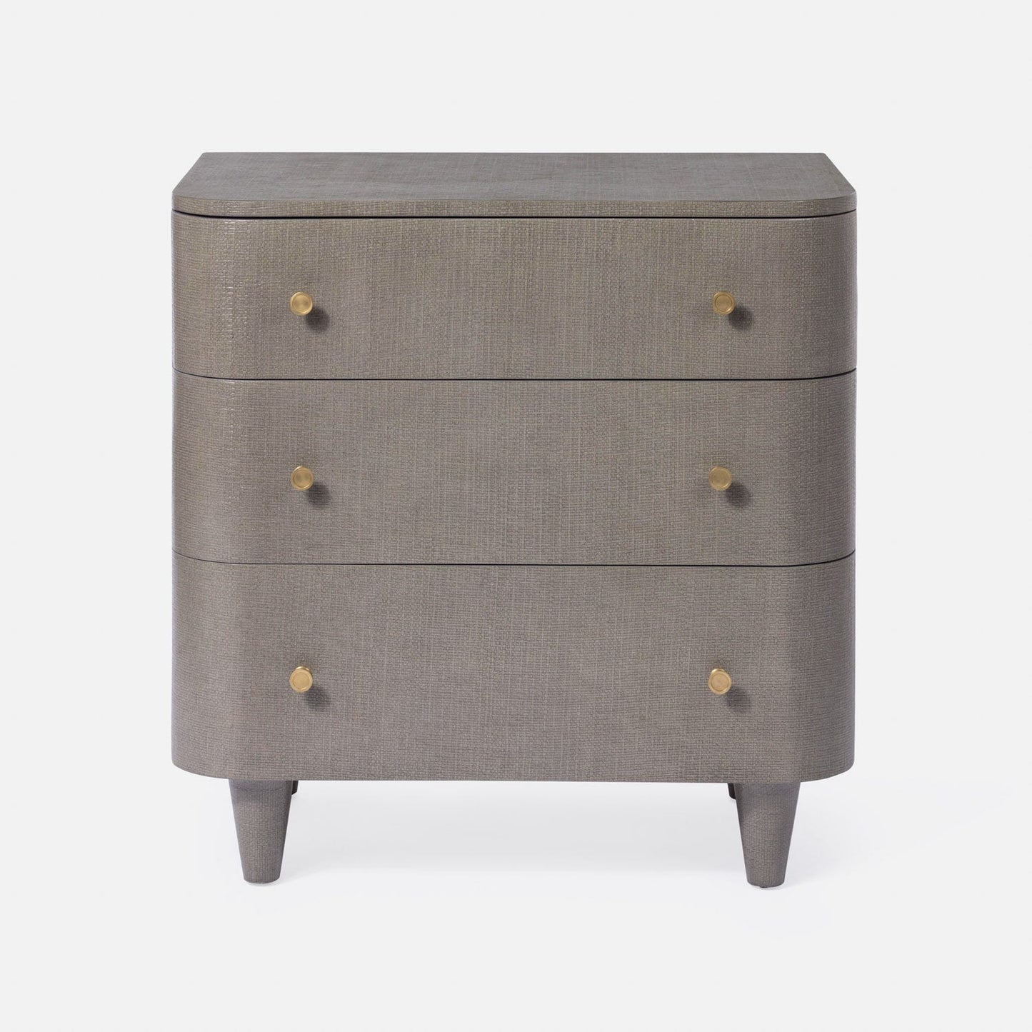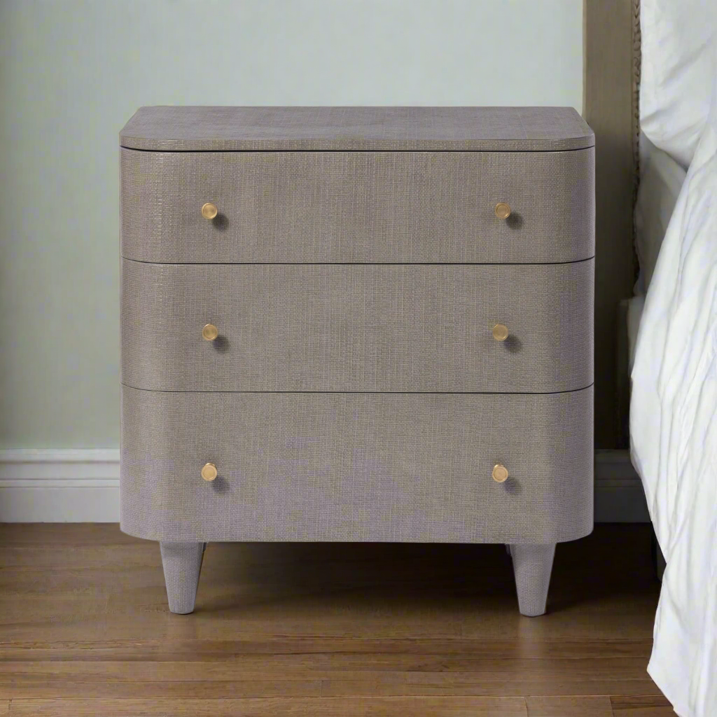 Seal Faux Raffia; Brass Hardware; Three Drawers