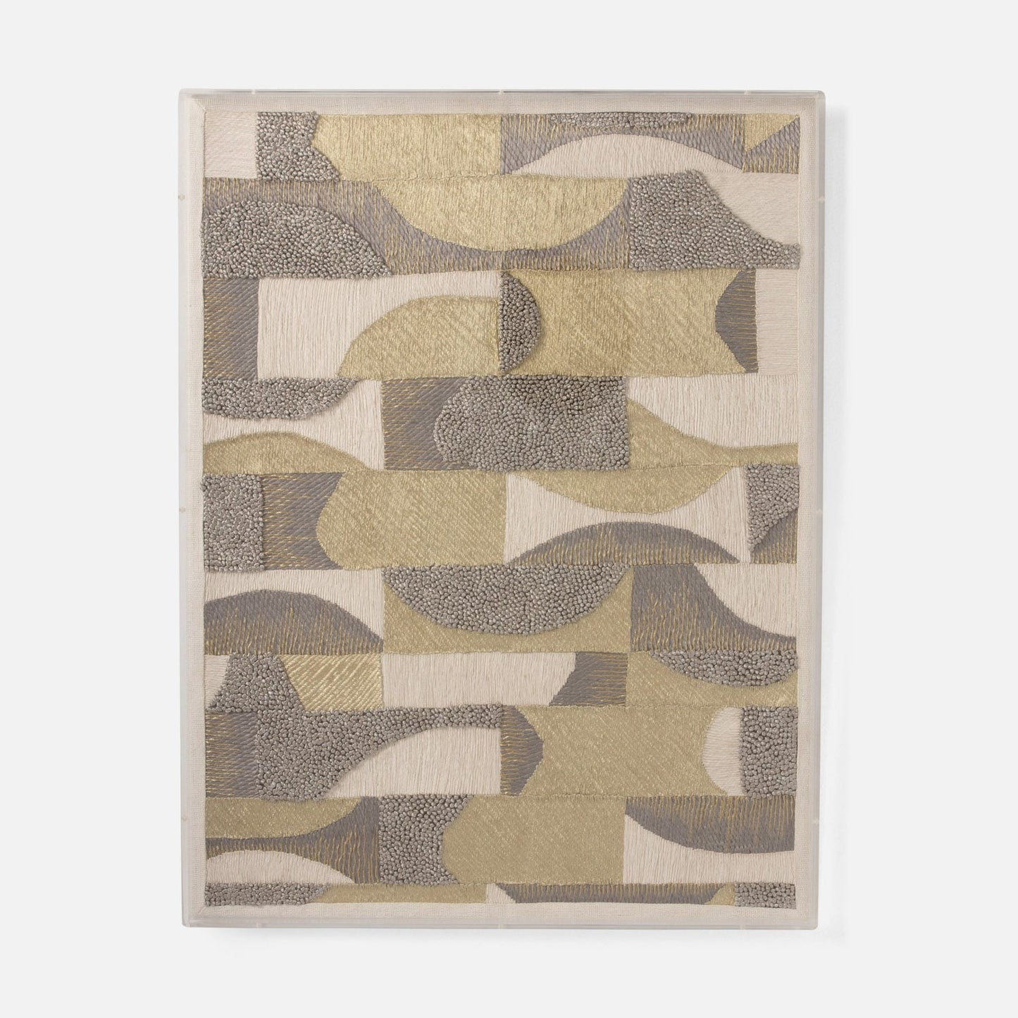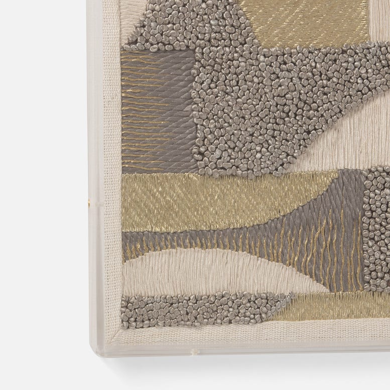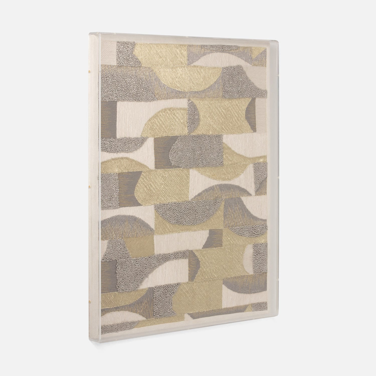 Made Goods' Prudence Wall Art showcases an abstract geometric design that artfully combines gold, silver, and white metallic fabrics to create a refined shimmer. This piece brings a sophisticated, contemporary edge to any space, reflecting light and adding depth with its mixed metallic textures. Ideal for elevating modern interiors, the Prudence Wall Art serves as a striking focal point that balances artistic expression with elegant craftsmanship.