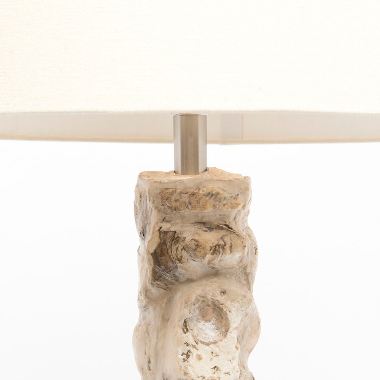 Chic and beachy, the sculptural Raina Floor Lamp in Natural Mix Oyster Shell from Made Goods is made from oyster shells stacked in a plaster resin. The Raina is the perfect eye-catching floor lamp for illuminating any space!