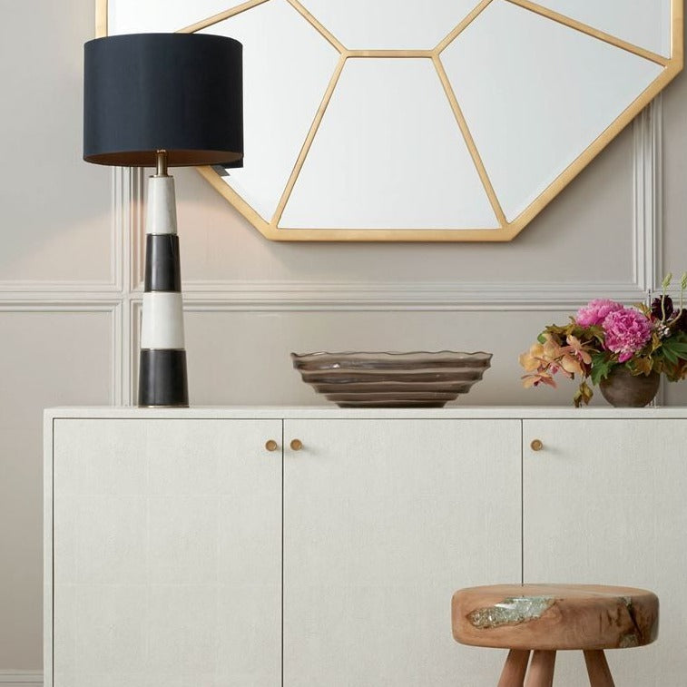 The Ramon Buffet from Made Goods boasts exquisite details and a sleek faux shagreen finish. It has three doors and cutouts for media storage, making it perfect for any dining or living room.