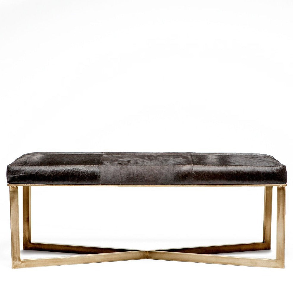 Roger Double Bench Dark Brown Hide with Antique Brass Base