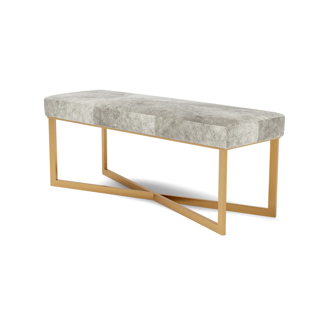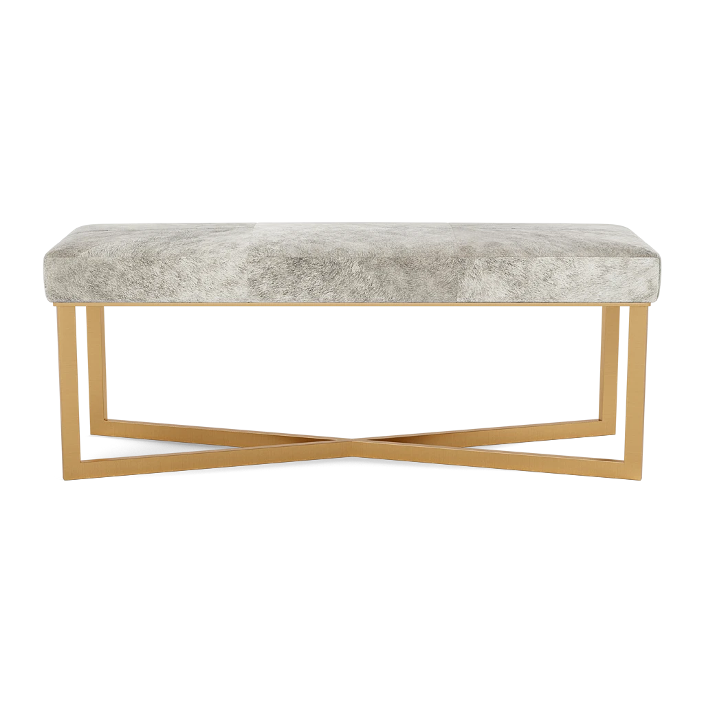 The Roger Double Bench from Made Goods is now available in a Gray Hair on Hide cushion with an Antique Brass Metal Base. The color combination is our favorite as it easily works in every room. The Brazilian hide cushion provides a soft and interesting natural element to the room.