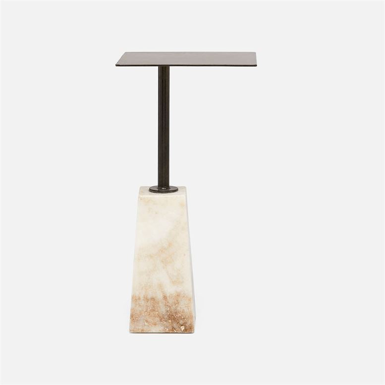 Onyx and iron are the unexpected combinations of materials that elevate the Rosanna Side Table from Made Goods. A slim rectangular top rests on a narrow base for a piece whose industrial vibe is balanced by the stone's creamy hues.