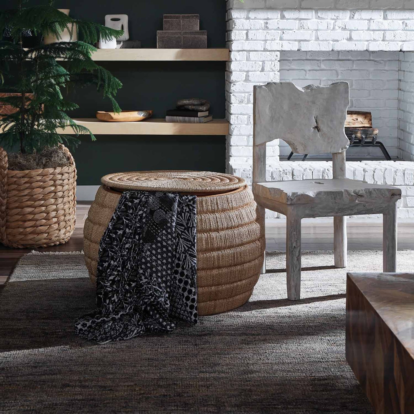 Teak Wood and Sliced Root; White Washed Finish *This item is handcrafted and may show slight variation in size from one piece to another. *Natural variations in this material may occur.