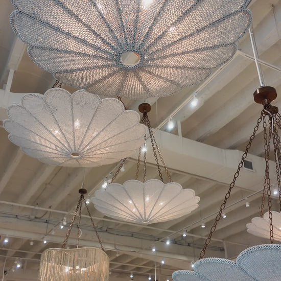 Made Goods presents the Sofia Chandelier in Natural Coco Beads offers a breezy sophisticated palm-inspired chandelier with a fresh vibe. Hand-strung woven coco beads create an organic, refined pattern for light to filter through.