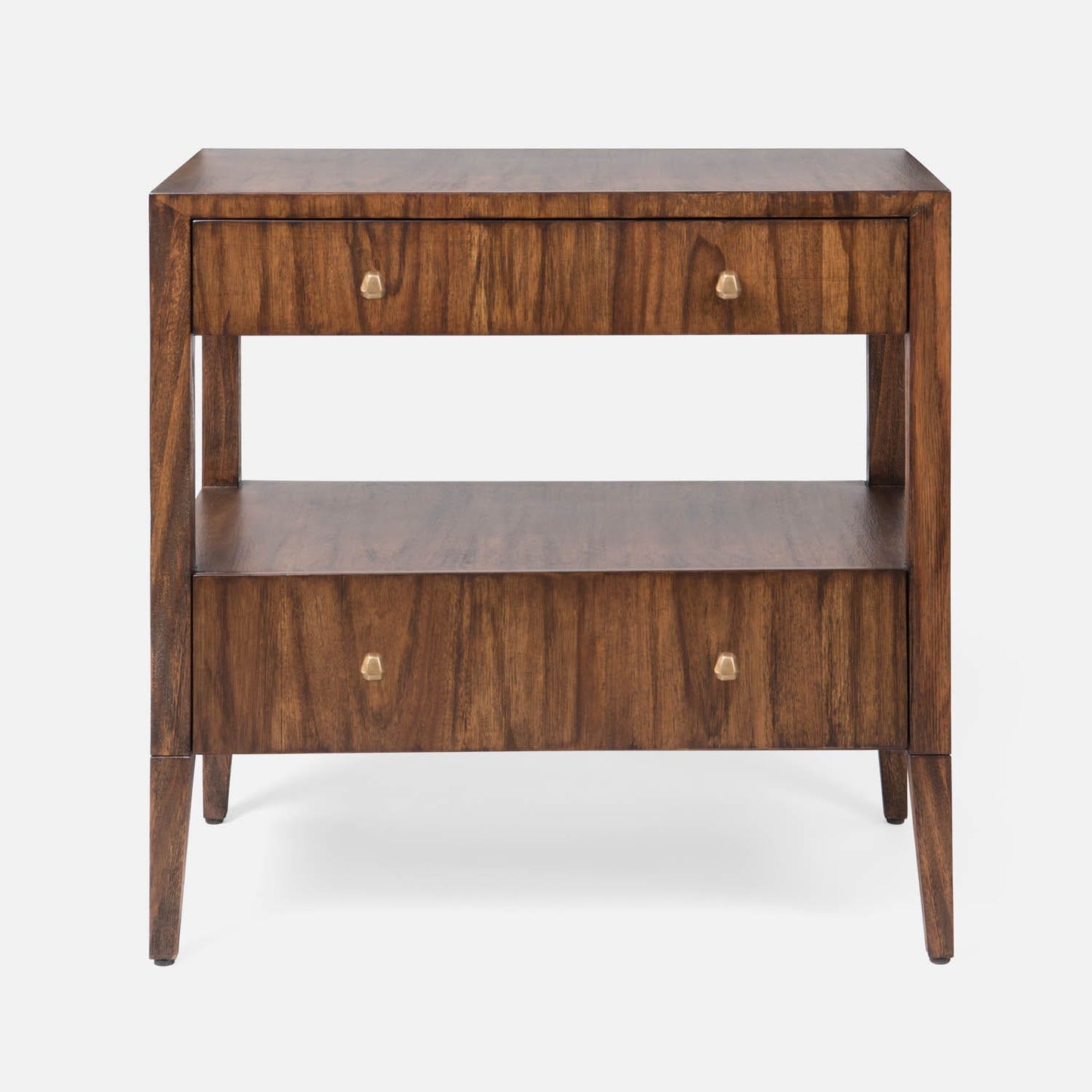 The Solaris Double Nightstand in Rustic Natural from Made Goods offers you a variety of storage options balanced with a sophisticated design. Featuring a dark-hued Brazilian wood and abstract brass knobs, the Solaris Double Nightstand is a versatile storage piece must-have! Variations are to be expected.