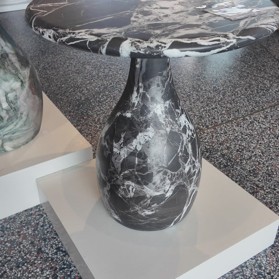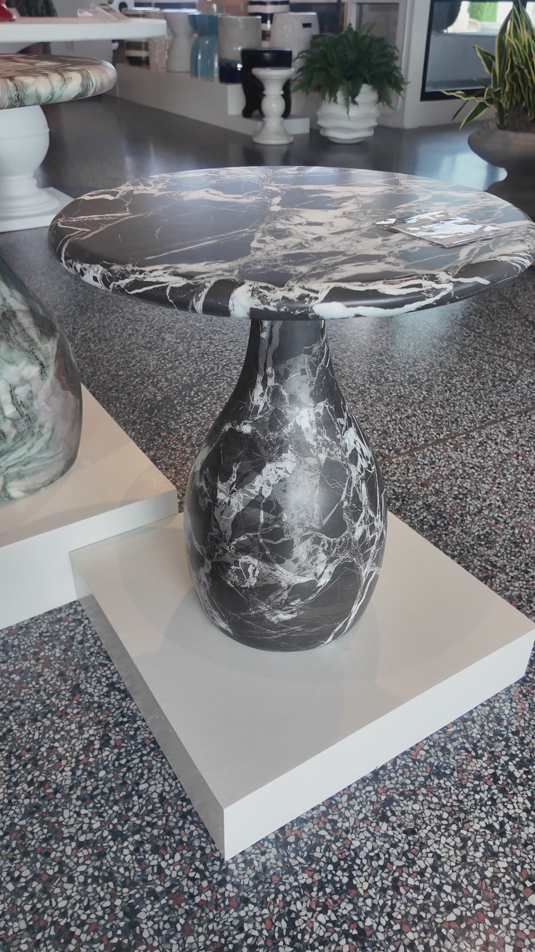 The Sophie Side Table in Nero from Made Goods entices one to swirl into stylish outdoor gatherings with an elegant teardrop shape. Both the tabletop and base are created from a faux marble material, evoking a timeless appearance.
