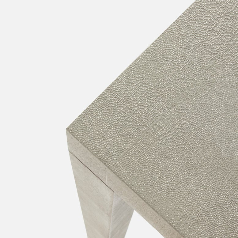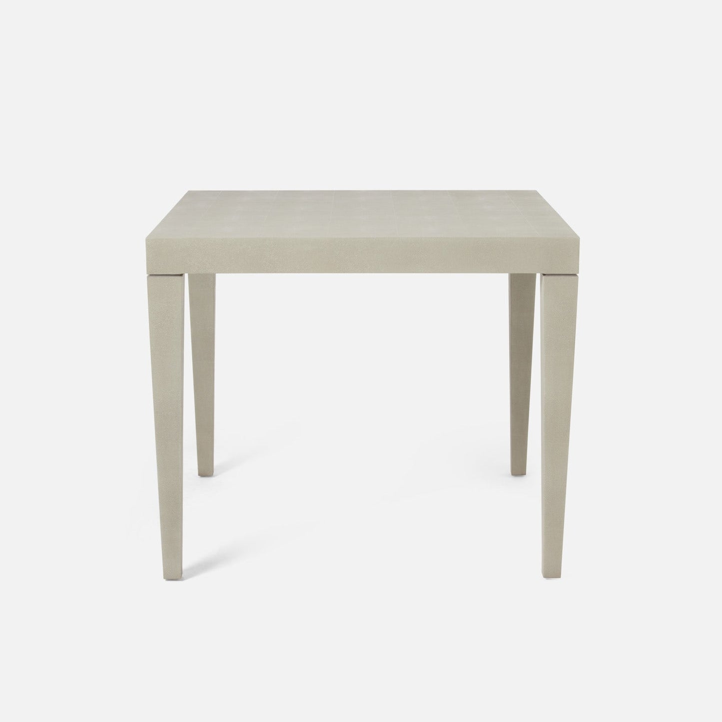 The square Sorin Game Table in Castor Gray Faux Shagreen by Made Goods reflects a subdued sheen with an element of texture. A standout winner, this furniture piece could also double as a small dining table in the breakfast area of your home.