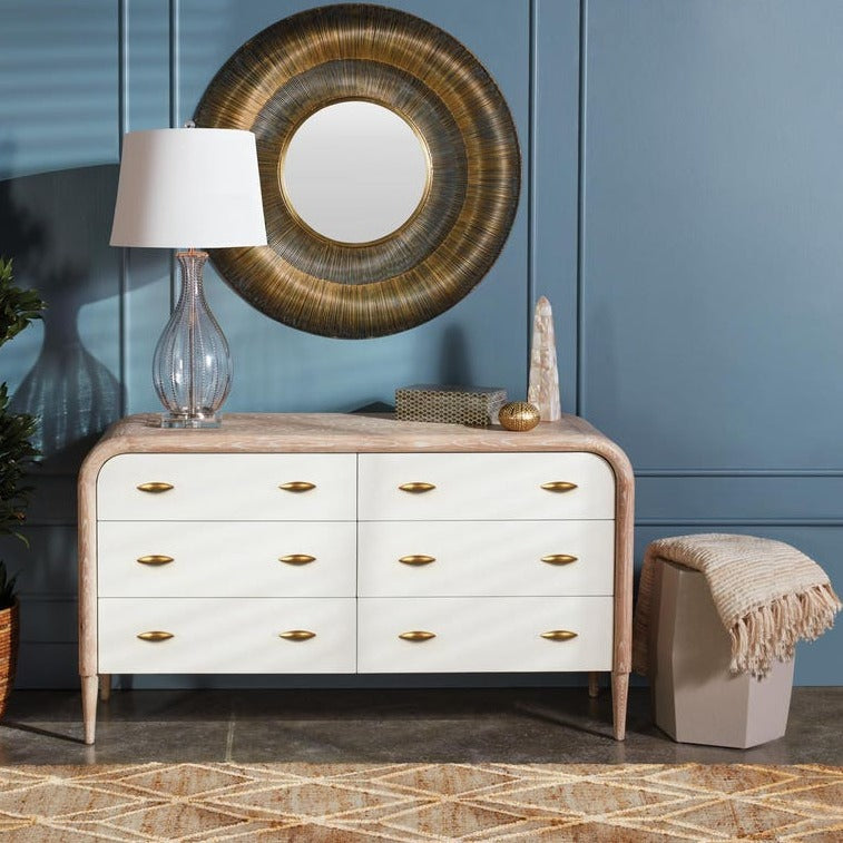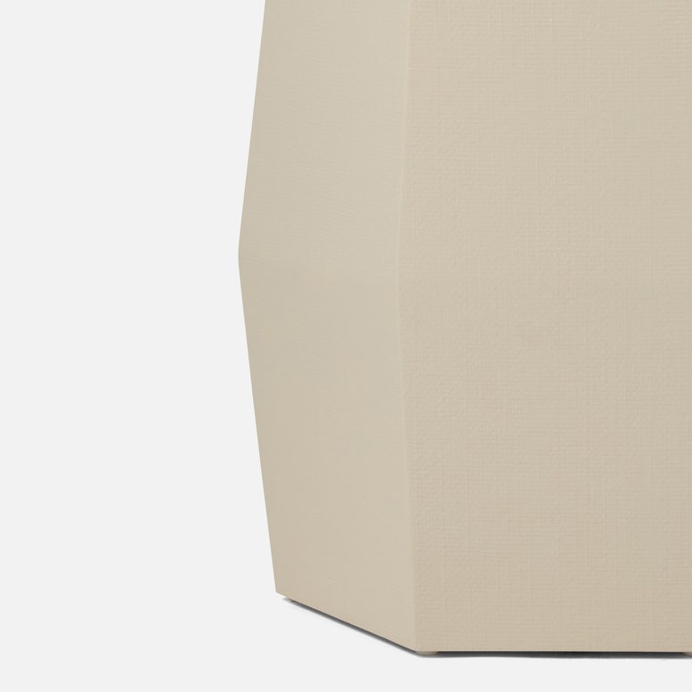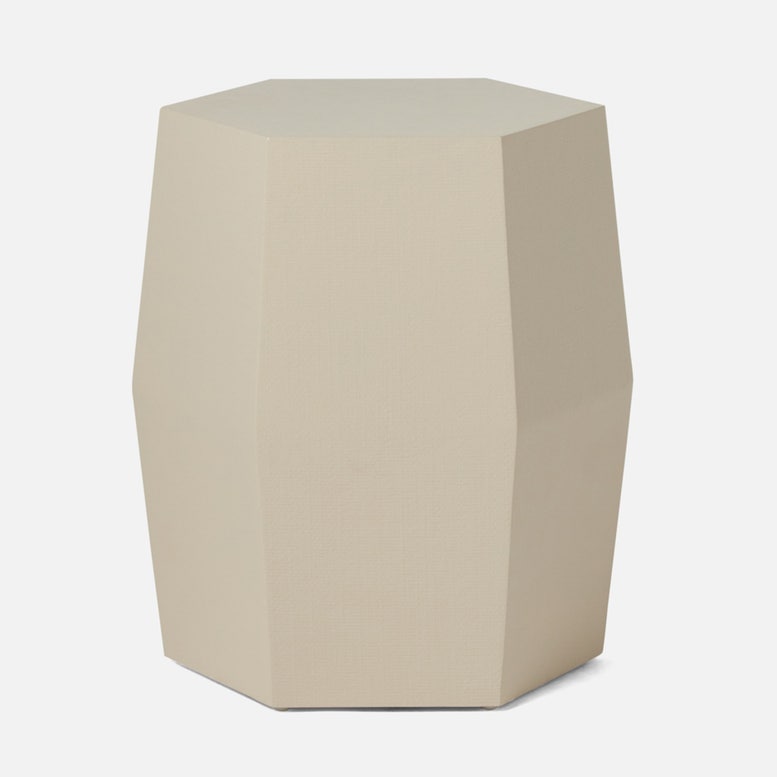 The modern hexagonal shape of the Sutton Stool in French Gray Faux Raffia from Made Goods is softened by its raffia finish. Stools like the Sutton are perfect for adding wonderfully detailed texture to an otherwise simple stool or side table.