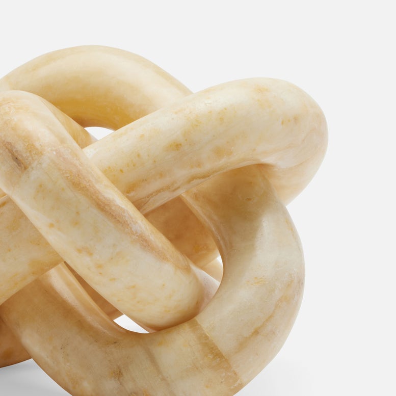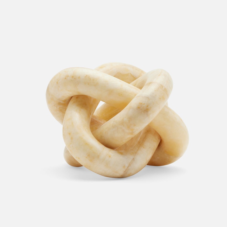 Inspired by Celtic knots, the Tallis Sculpture in Natural Stone from Made Goods features a three-link sculpture, adding symbolism and style to a bookshelf, coffee table, mantle, or more. Each piece is handmade, never mass-produced, and built to withstand varied elements and temperatures.