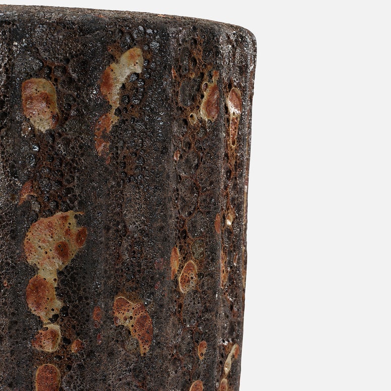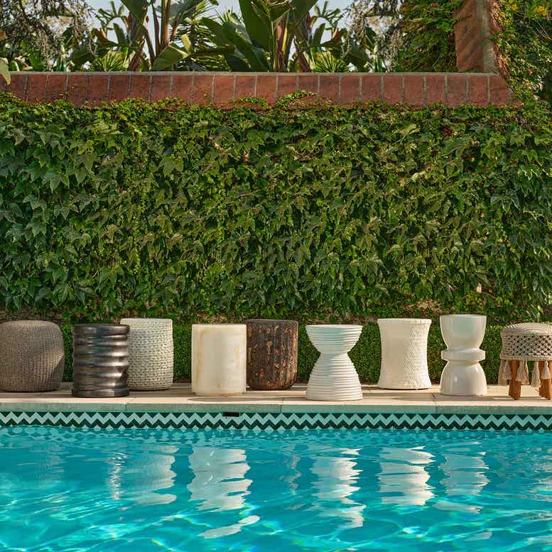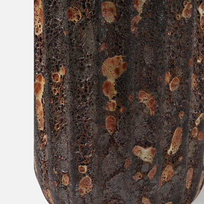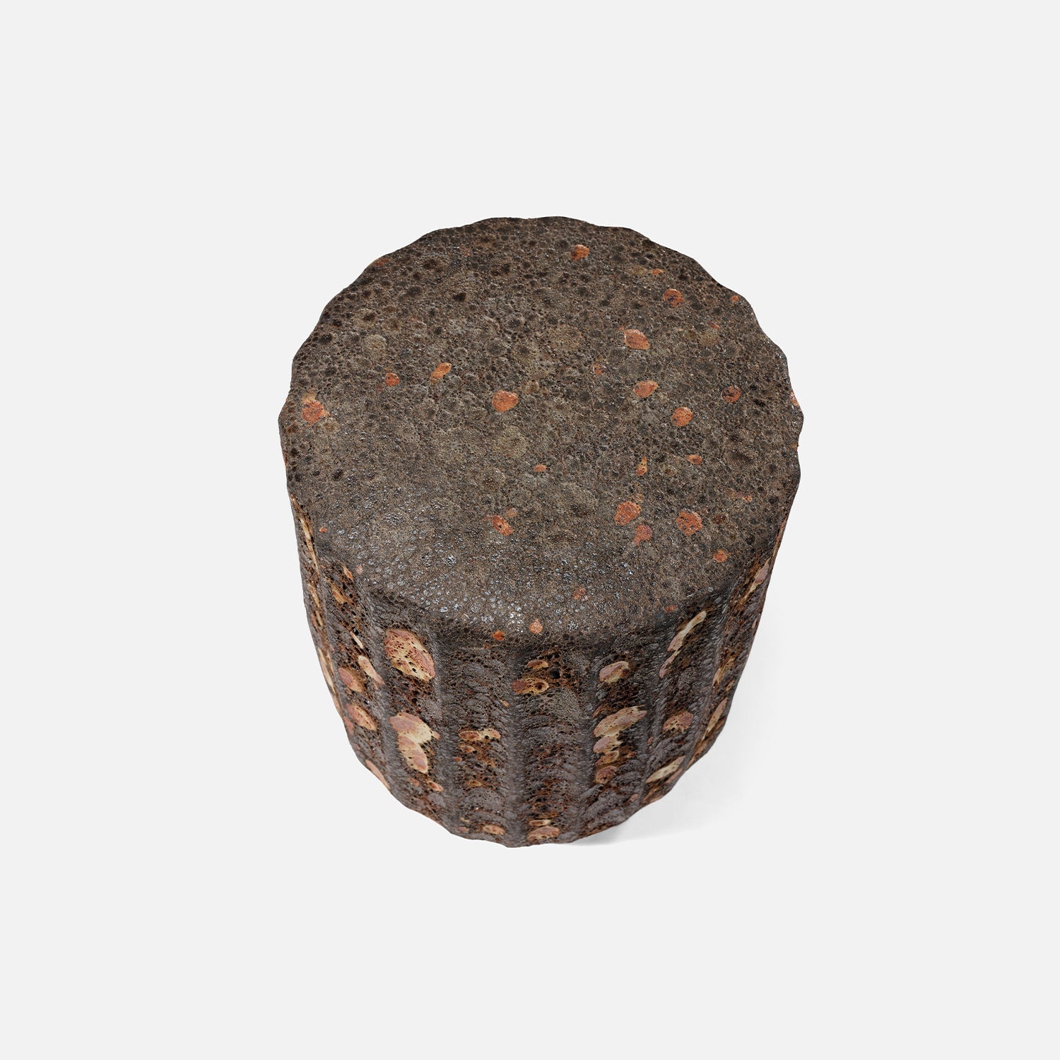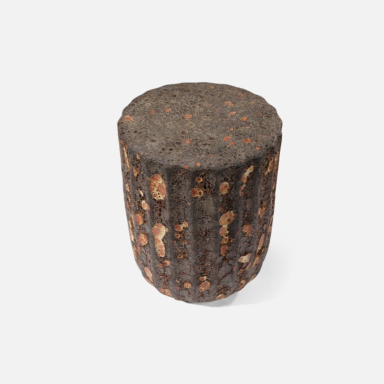 The Uriah Stool in Rust Ironstone showcases Made Goods' mastery of reactive finishing techniques, delivering a sophisticated balance of ruggedness and refinement. This distinctive piece features textured ironstone construction with elegant scalloped edging, creating a statement accent with artisanal character.