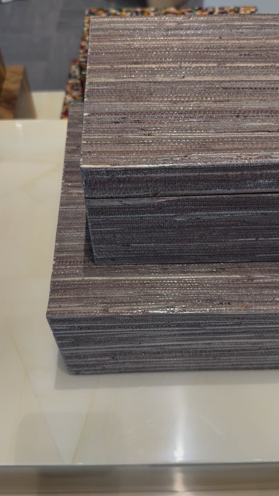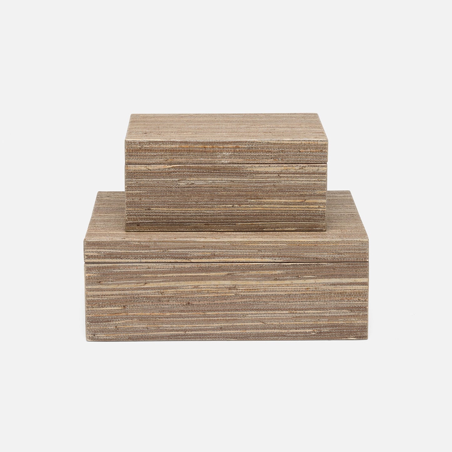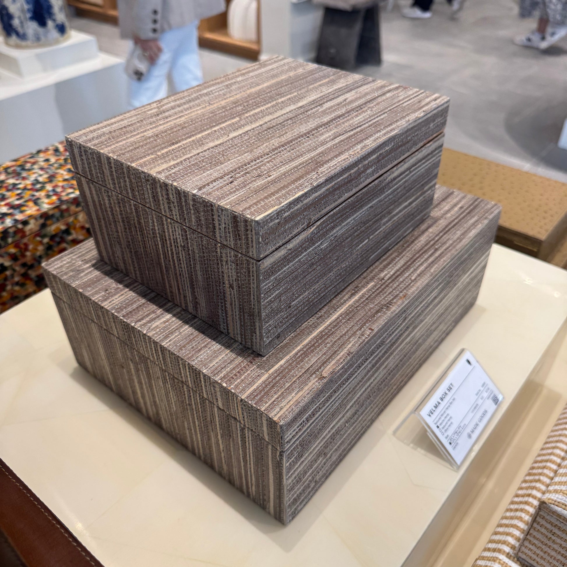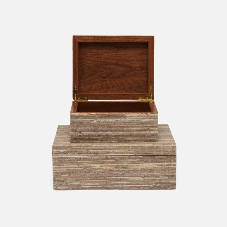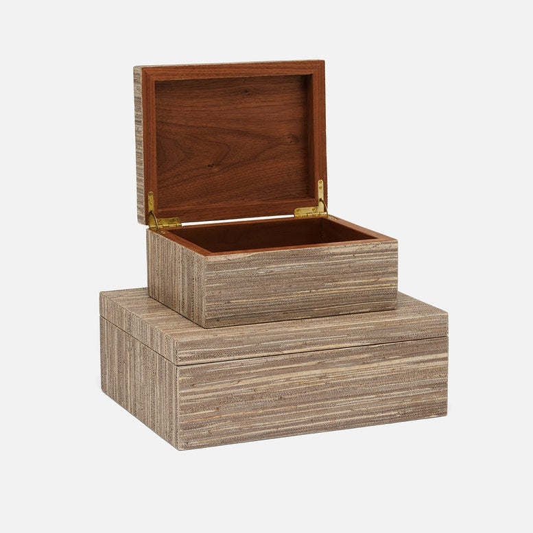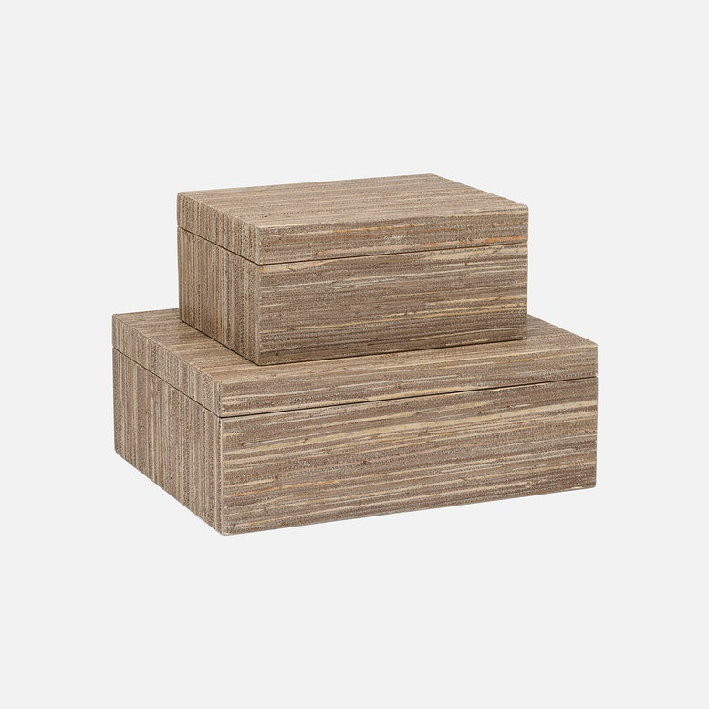 Expertly crafted from high-quality hemp, the Velma Box Set in Mocha Hemp from Made Goods exudes a natural and sophisticated texture, elevating any room with an understated touch of elegance.