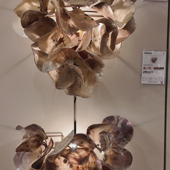 The Venus Sconce from Made Goods in Natural Saddle Oyster Shell is a handcrafted and unique statement piece. The florets of saddle oyster shells are meticulously placed, resulting in an organic and artistic effect that sets the Venus Sconce apart.