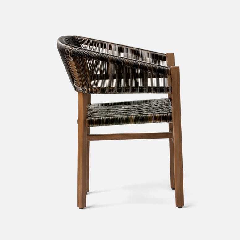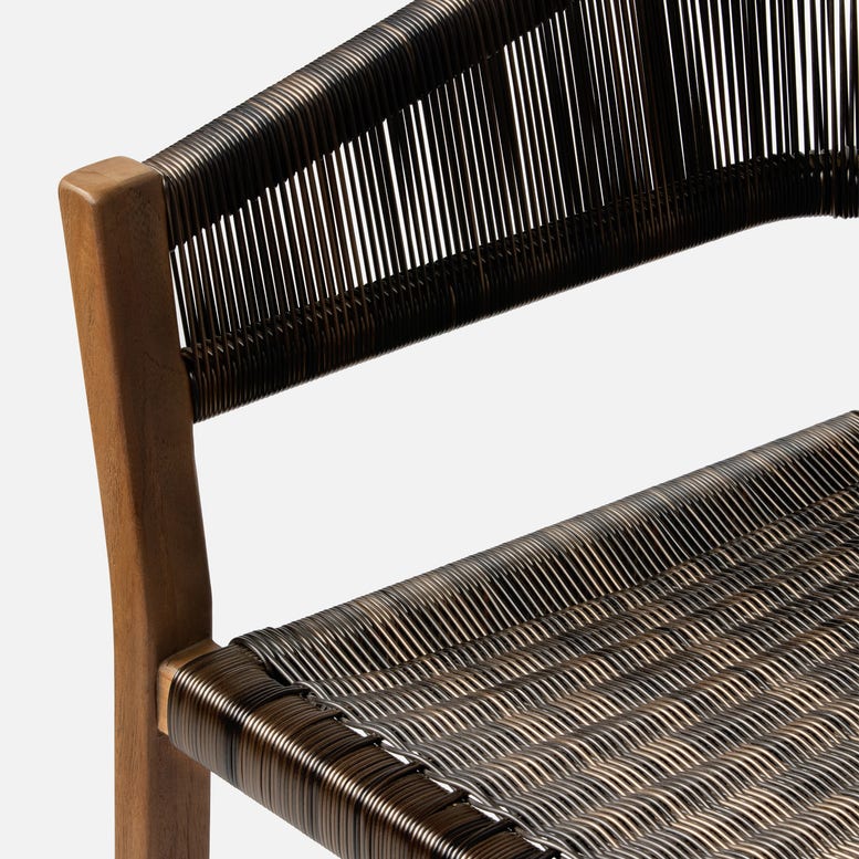 Rooted in Scandinavian design, the Wentworth Dining Chair in Dark Espresso Wicker from Made Goods elevated its inspiration by integrating woven elements, all-weather materials and contemporary proportions. Highly versatile, a dramatic palette of cool brown wood and deep espresso faux rattan lends for a a sophisticated to modern setting.