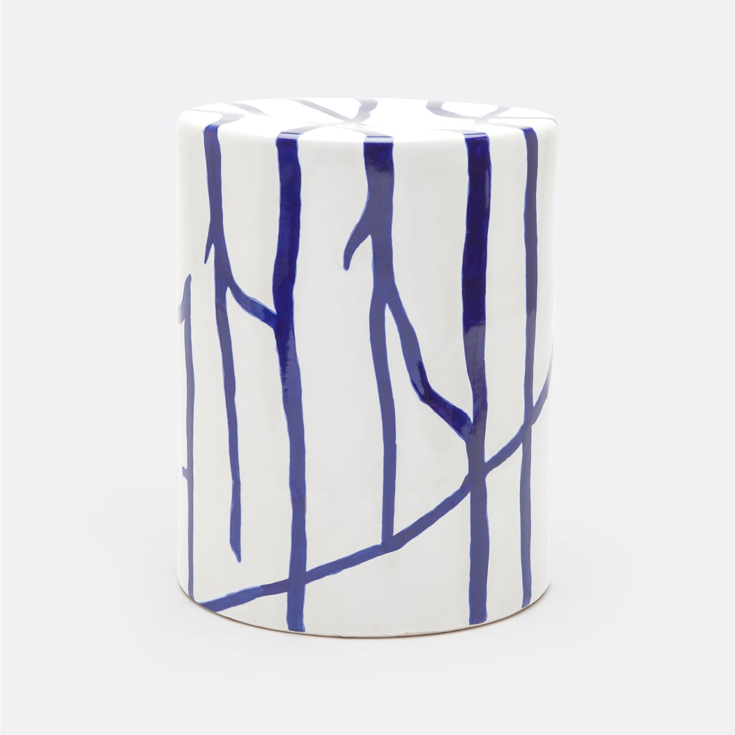 The Made Goods Willow Stool in blue, inspired by Asian calligraphy, reflects an organic, bold, branch-like design. Hand-painted in blue, this modern stool can be used as seating or as a side table in any living area of the home.