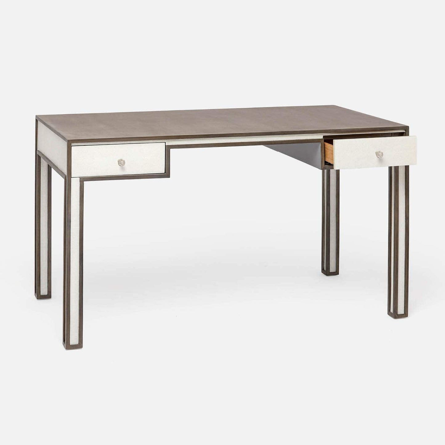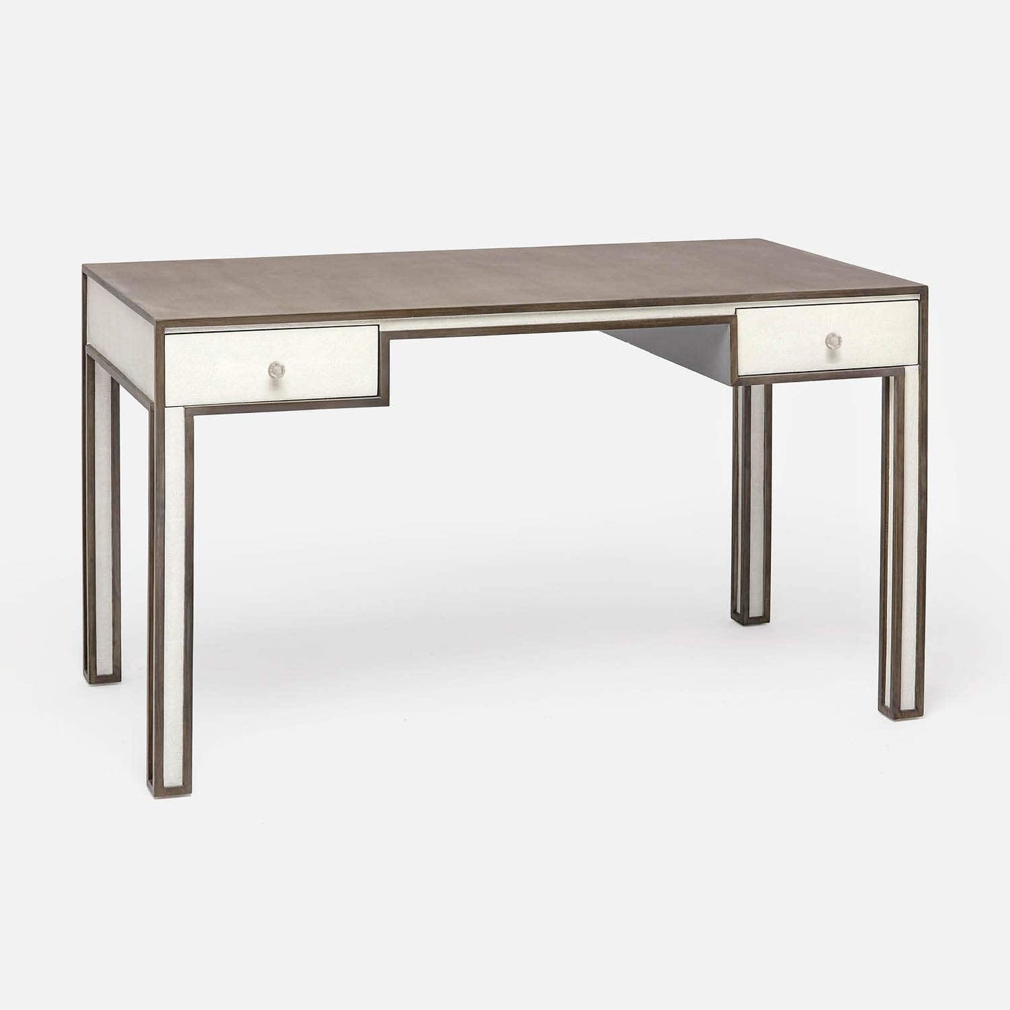 Wolfred Desk Pristine Vintage Faux Shagreen and Gray Stained Oak