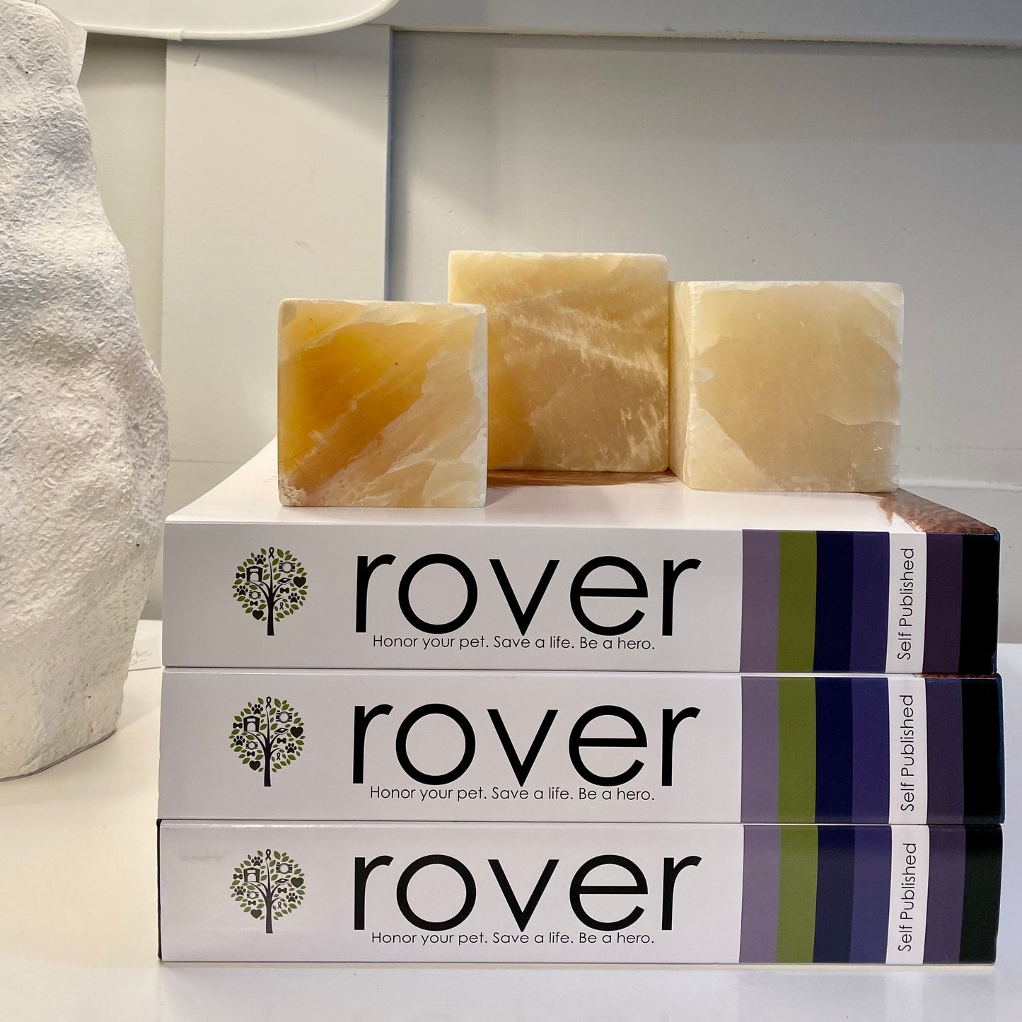 The Wynn Cubes in Light Onyx from Made Goods deliver a shimmering touch of style to your bookshelves, desktop, and table surfaces. Neutral, naturally hued onyx cubes work perfectly as paperweights, bookends, or an artful point of visual interest.