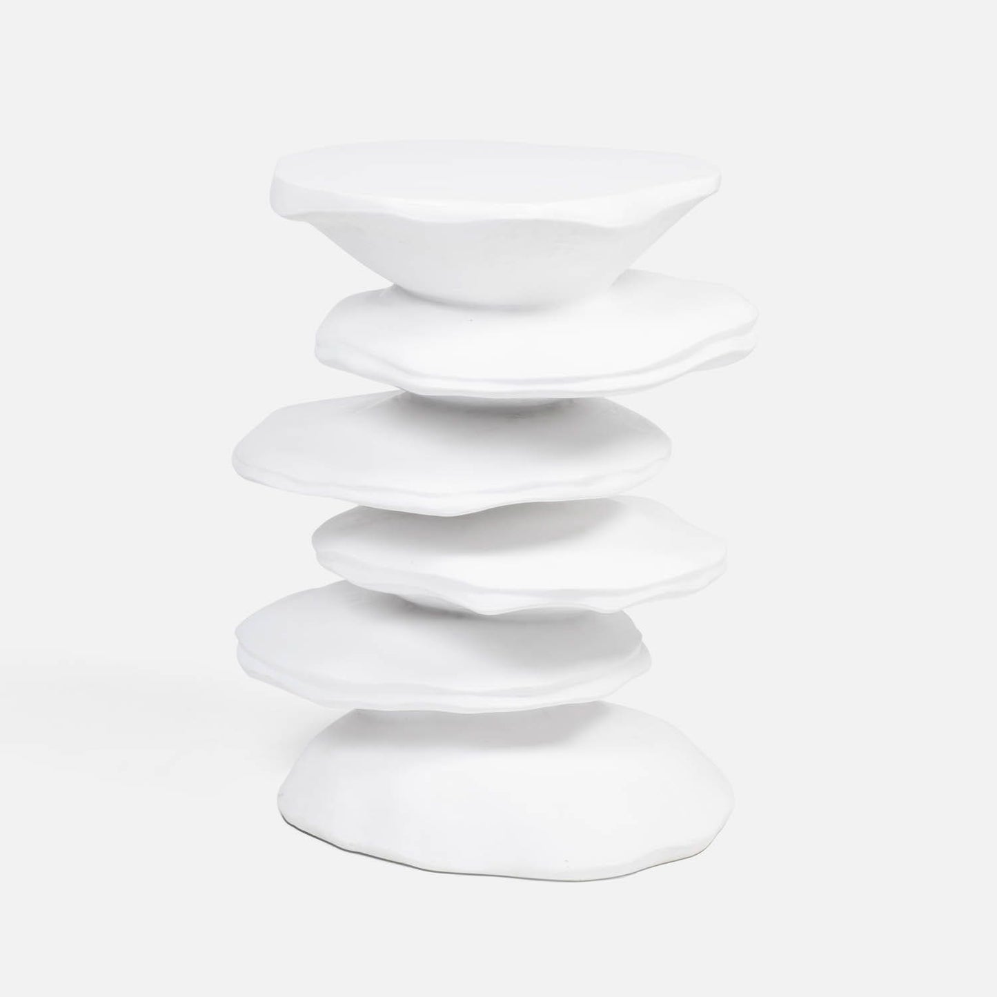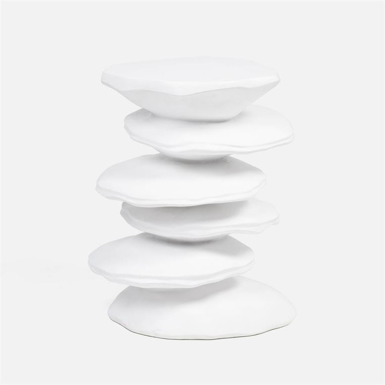 The Zuri Accent Table in Flat White Resin from Made Goods offers a stacked side table with irregular forms at play. This stunning piece is both whimsical and refined. This clever side table is ideal for a cup of coffee or a cocktail.