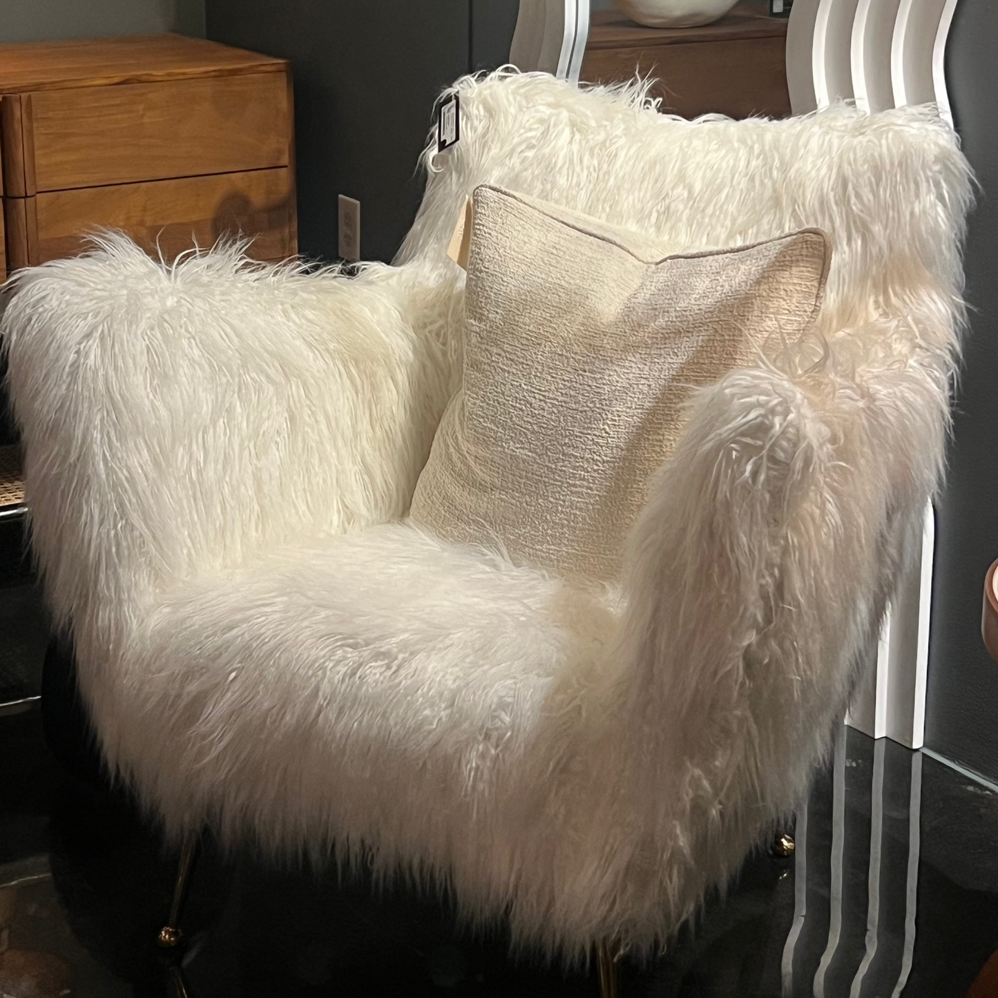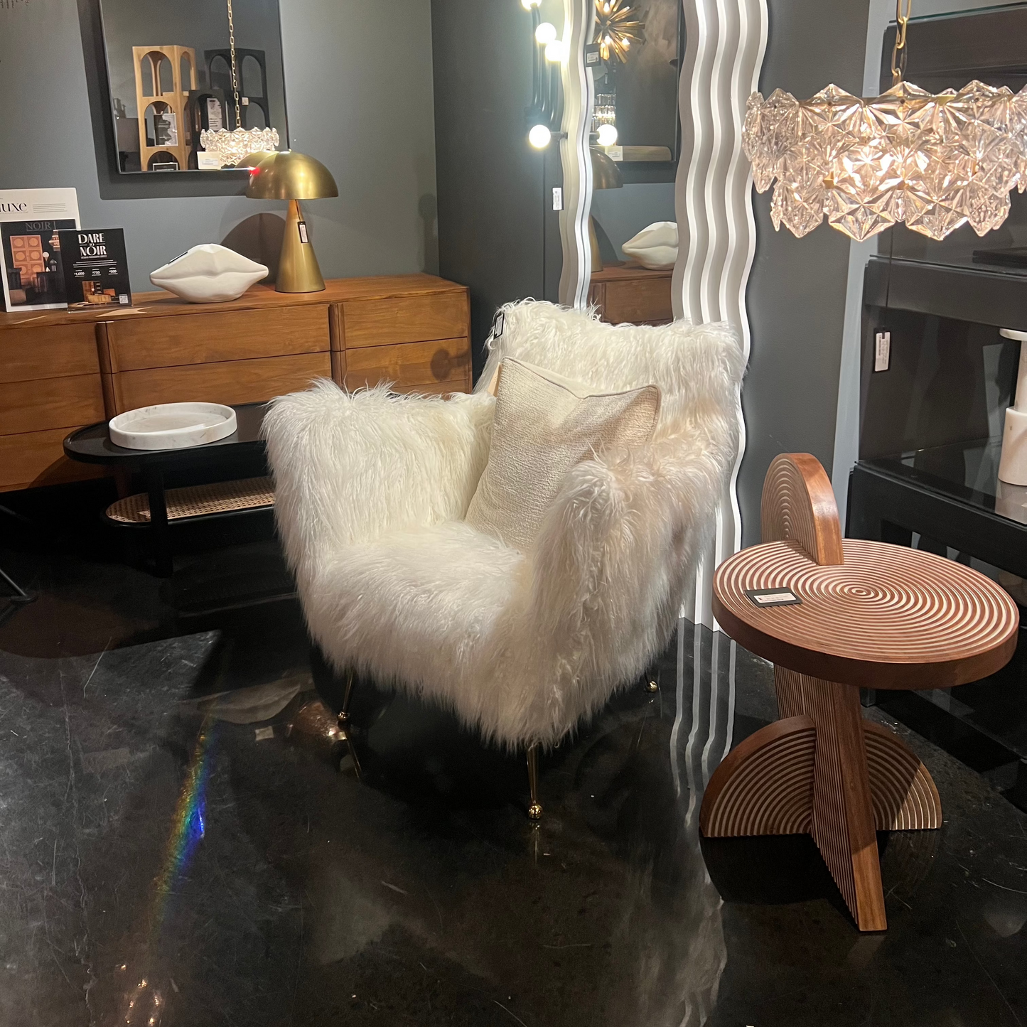 The Noir Rodney Chair in Faux Flokati from Noir boasts a substantial frame, along with authentic Flokati fabric and delicate drumstick feet in a classic antique bronze finish. This combination creates an effortlessly stylish and natural aesthetic.