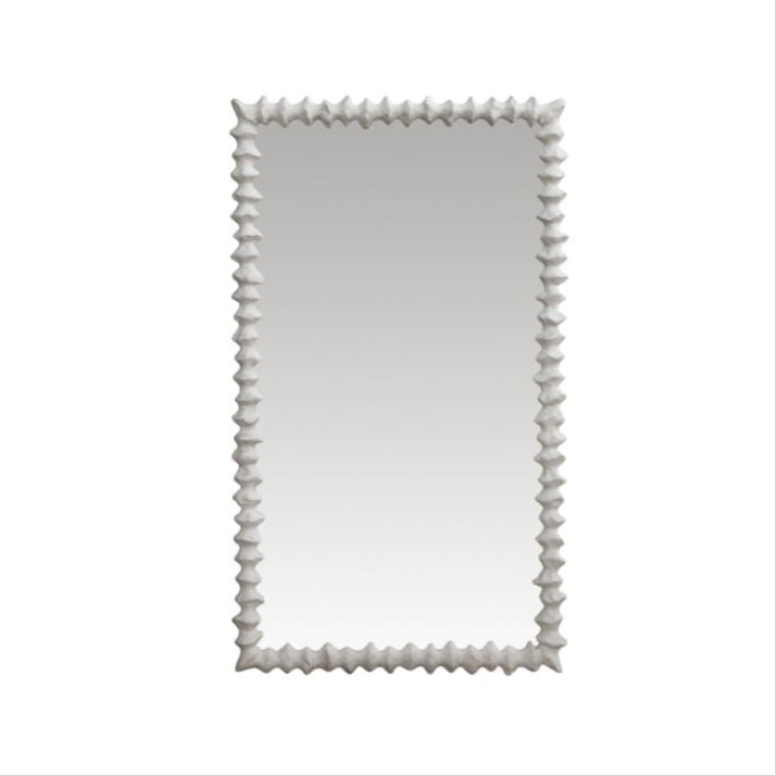 The Clyde Mirror in White from Oly Studio reflects a clean and modern mirror design for your home that perfectly balances a casual and formal sensibility Crisp white resin with a three-dimensional design on the rectangular frame beautifully adorns hallways, entryways, and master suites alike. *Available in two sizes.