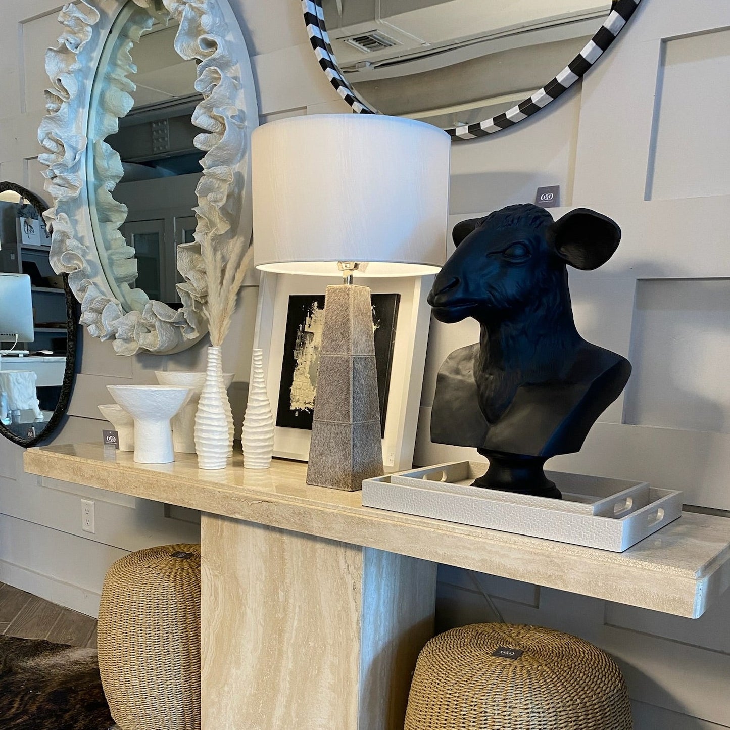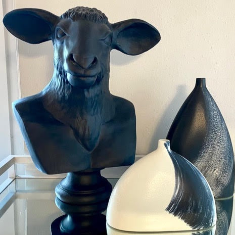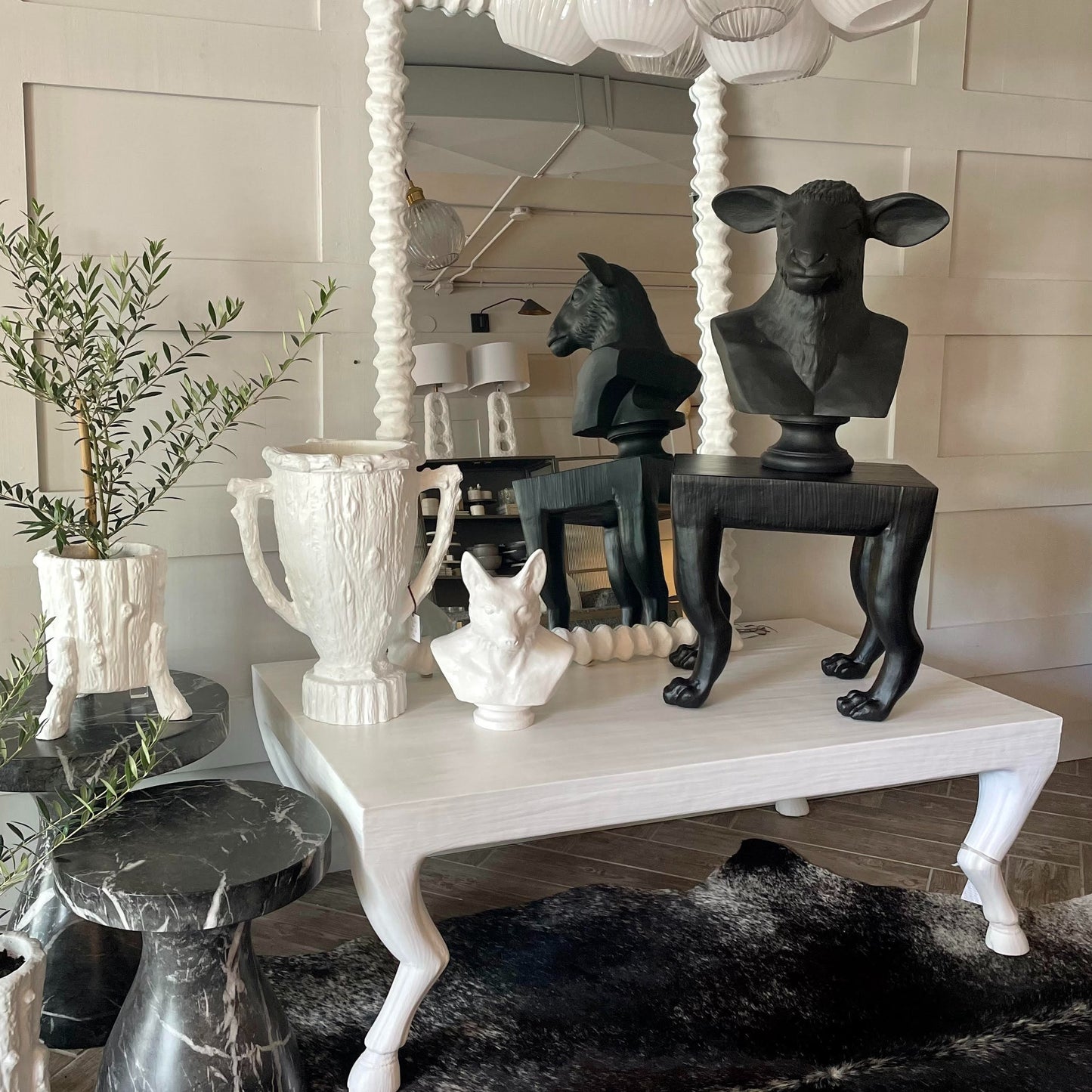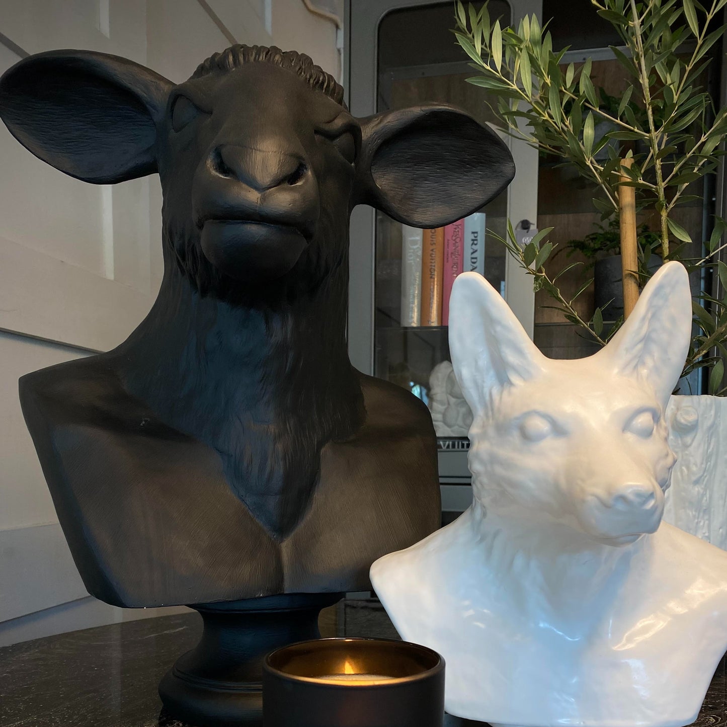 Exuding whimsy and intrigue, the Ramsey Animal Bust in Black from Oly Studio is a must-have for any center or entryway table. Its clever design and unique cast resin material, complete with intricate carvings, make it a perfect gift for any hostess or housewarming occasion.