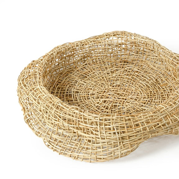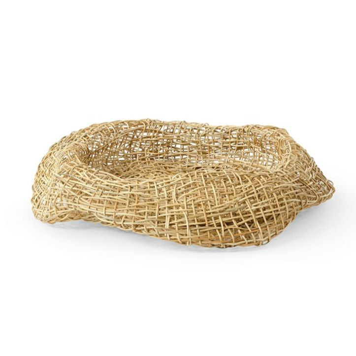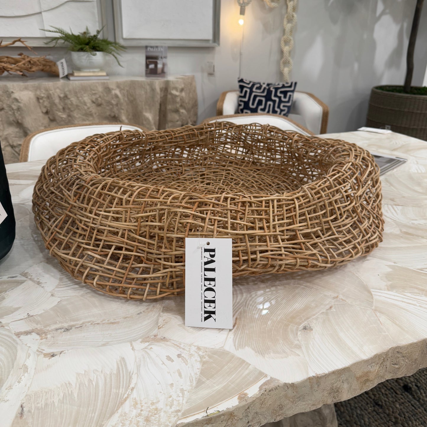 The Andorra Bowl in Natural Rattan by Palecek features a split rattan open weave hand-formed over a metal frame in a natural finish.