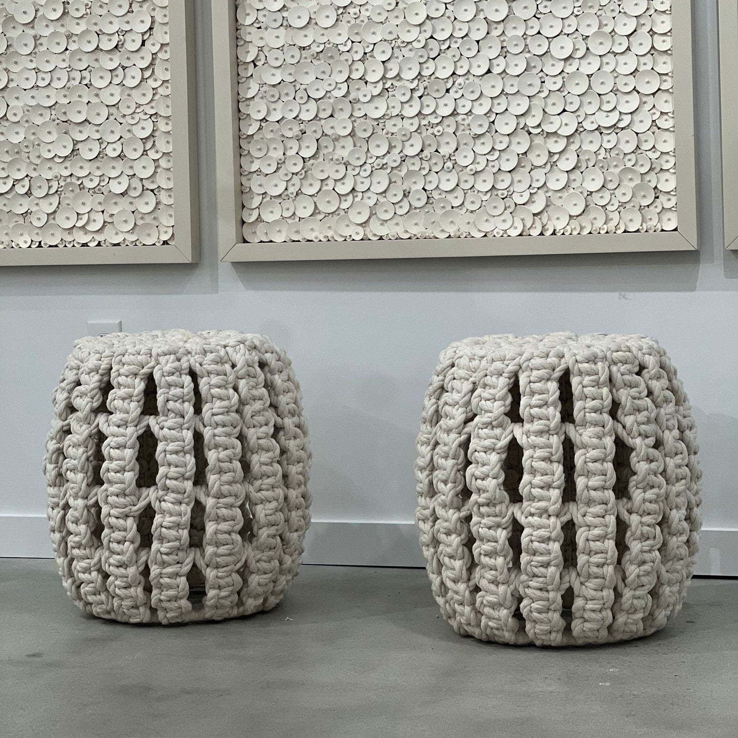 The Annabel Hassock from Palecek offers versatility and an easy coastal vibe for your home. The Annabel features a hand-woven natural cotton textile over a metal frame.