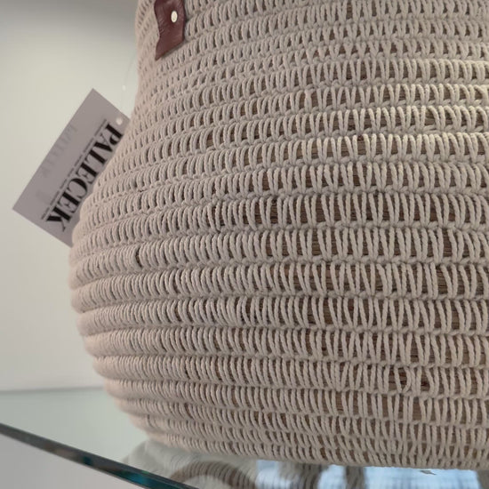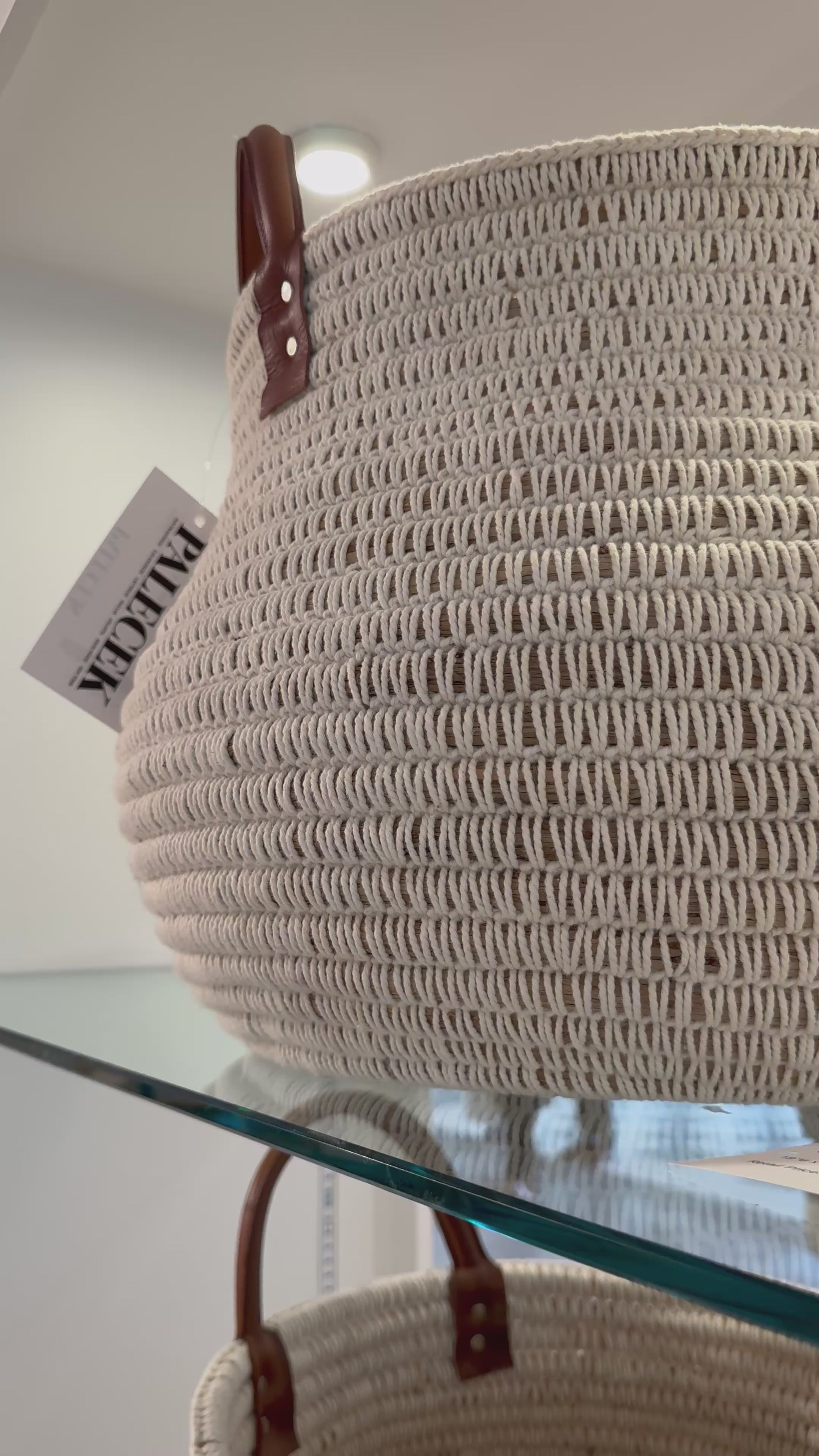 Decorative baskets like the Cairo Basket in White showcased by Palecek hold limitless possibilities. The Cairo is constructed of a natural seagrass frame in a coil weave design with hand-wrapped white cotton and features large leather handles.