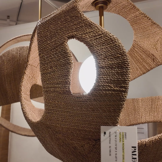 Corsica Large Pendant by Palecek arrives as an exercise in material restraint. The hand-woven lampakanay rope—natural, unbleached—wraps a powder-coated metal frame with the kind of directness that suggests confidence in the materials themselves. There is no ornamentation layered over ornamentation, no visual noise competing for attention. The antique brass canopy accepts multiple rod lengths, a practical consideration that becomes aesthetic.