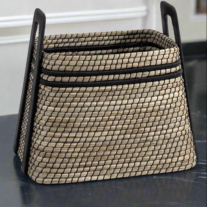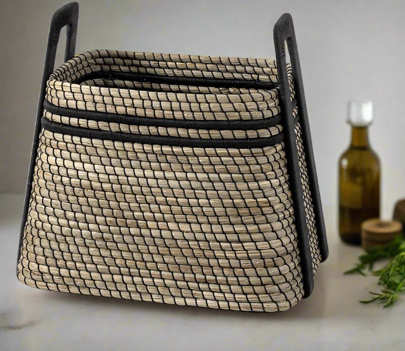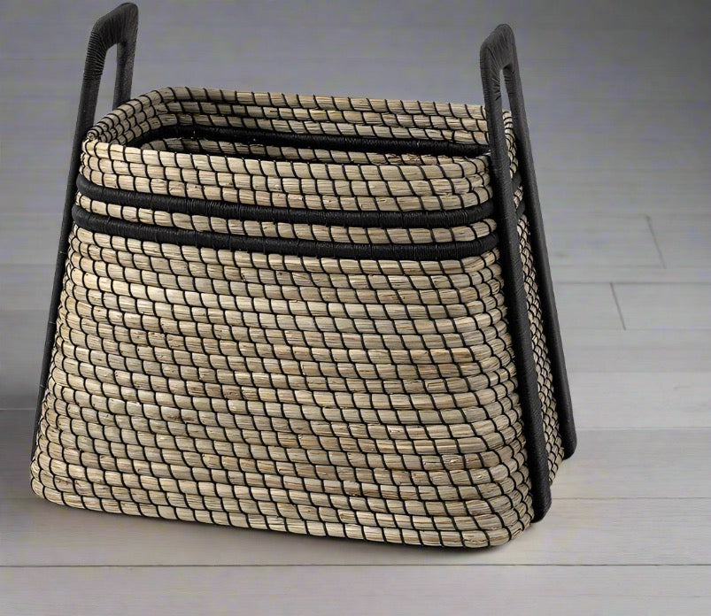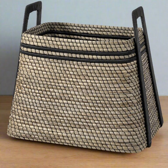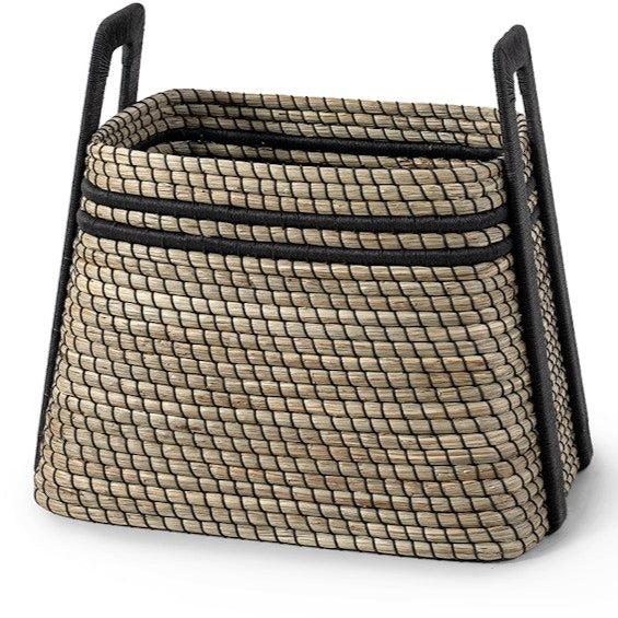 Ethan Basket Seagrass and Black Leather - multiple options