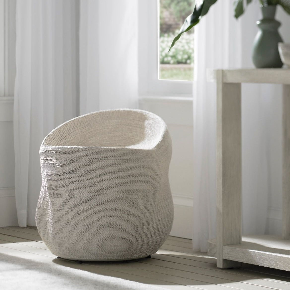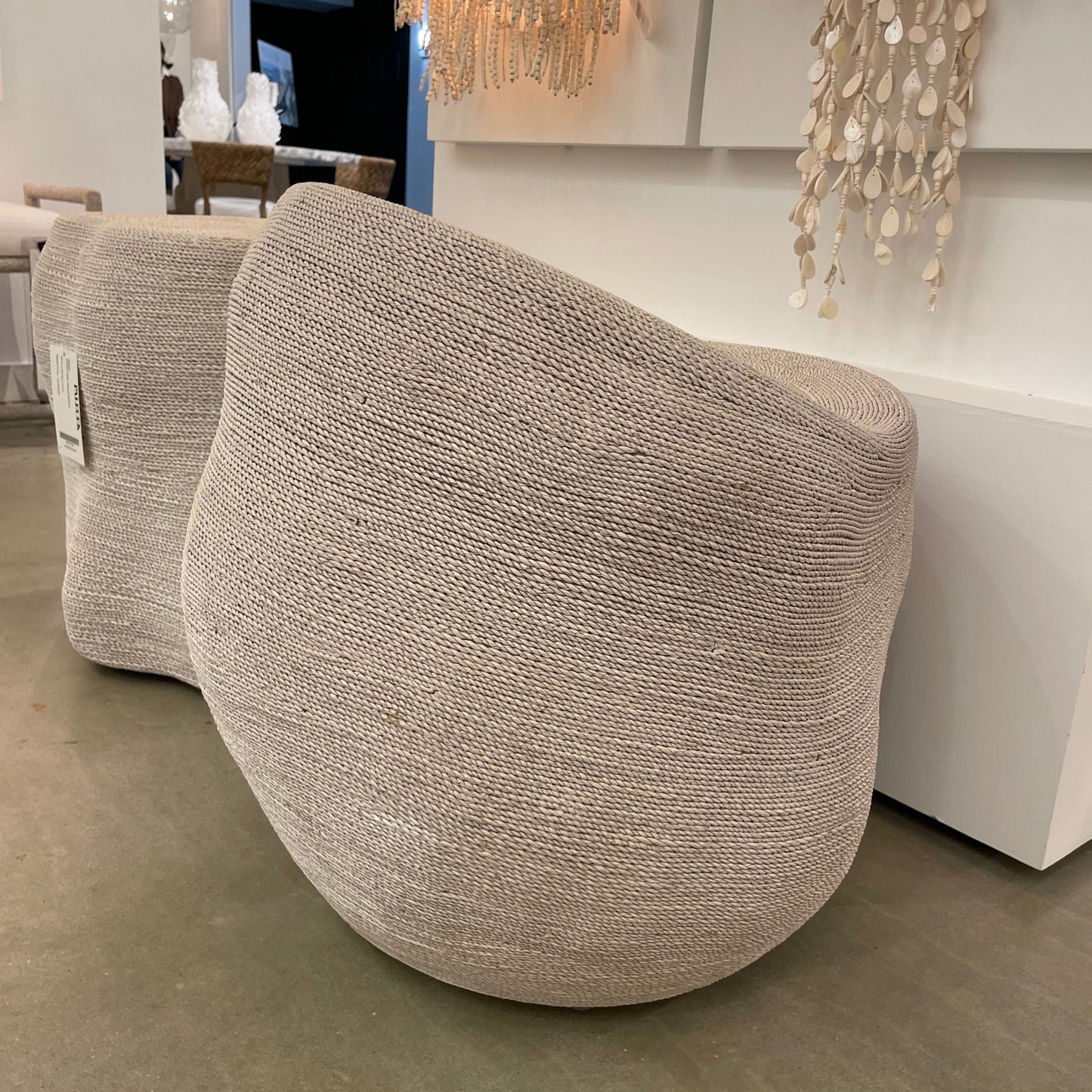 Jaden Swivel Stool in White Rope from Palecek offers versatility and an easy coastal vibe for your home. The Jaden is made of hand-woven lampakanay rope in a white-wash finish wrapped over a metal frame and features a 360 degree swivel mechanism.