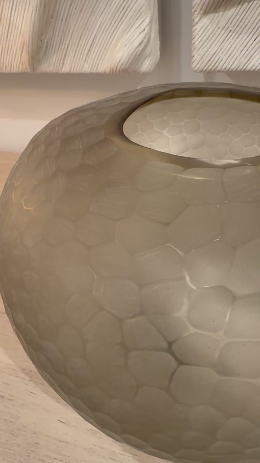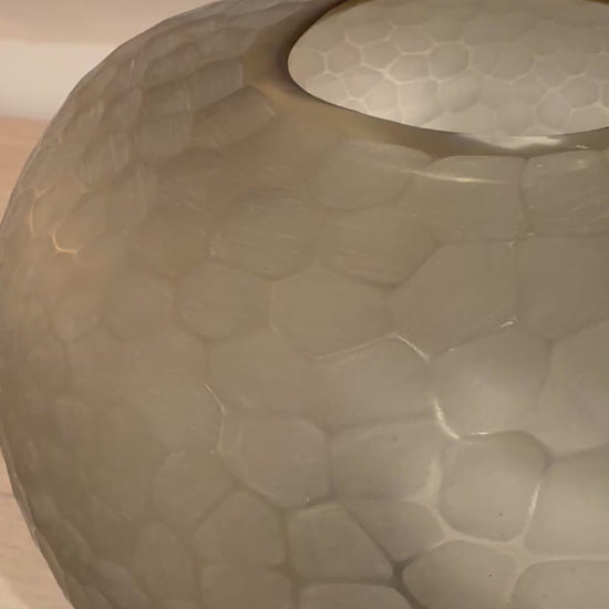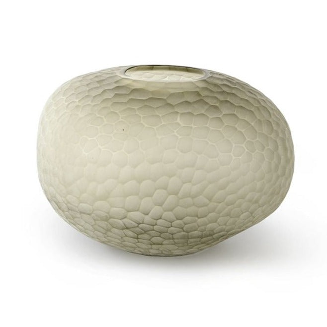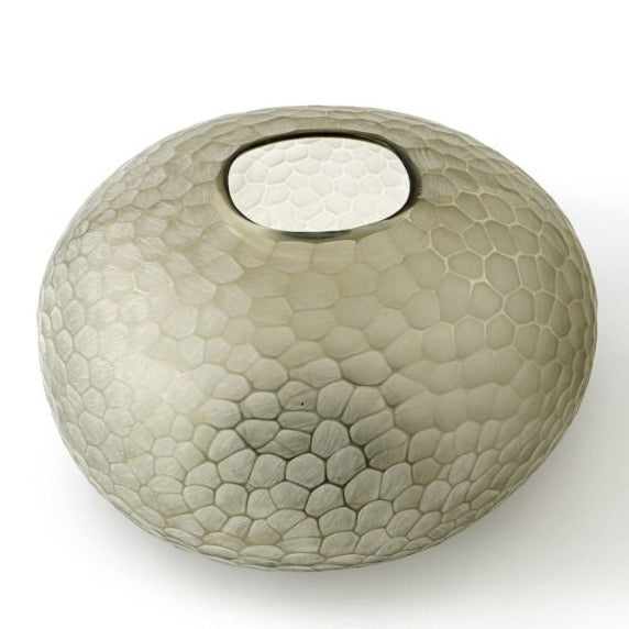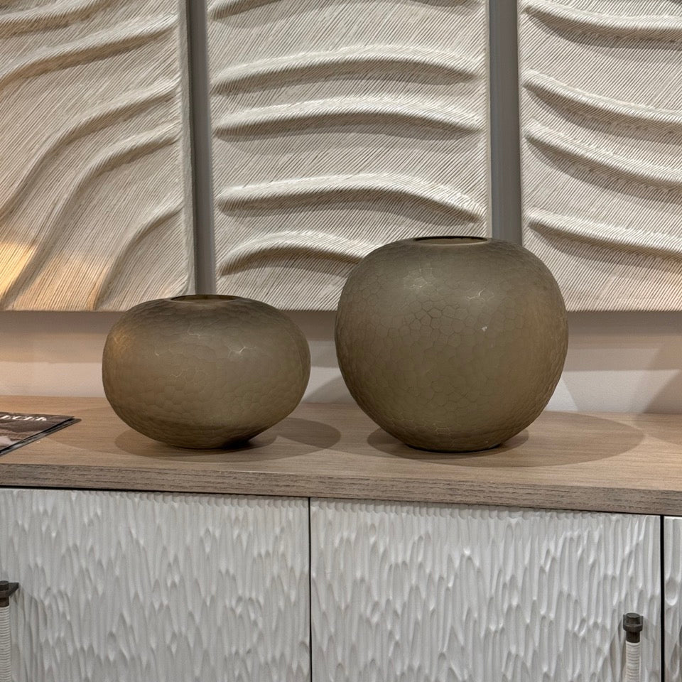 Make a statement with the Lagos Vase Small in Taupe from Palecek. The small Lagos vase is sure to stand out displayed on a coffee table or styled on a shelf and is made up of taupe glass with chiseled details making it one of a kind. Please note, vase is hand-crafted and will vary in color, chisel, shape, and thickness.