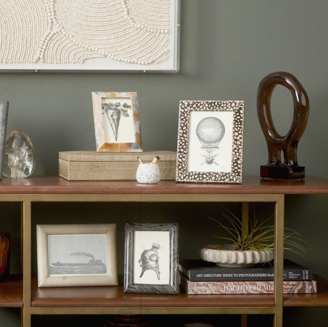Expertly made with panels of African horn, the Clifton Frame in Sand Horn by Pigeon and Poodle features a stunning mix of natural tones. Use this frame to elegantly showcase your cherished memories on any bookshelf, desk, or table surface.