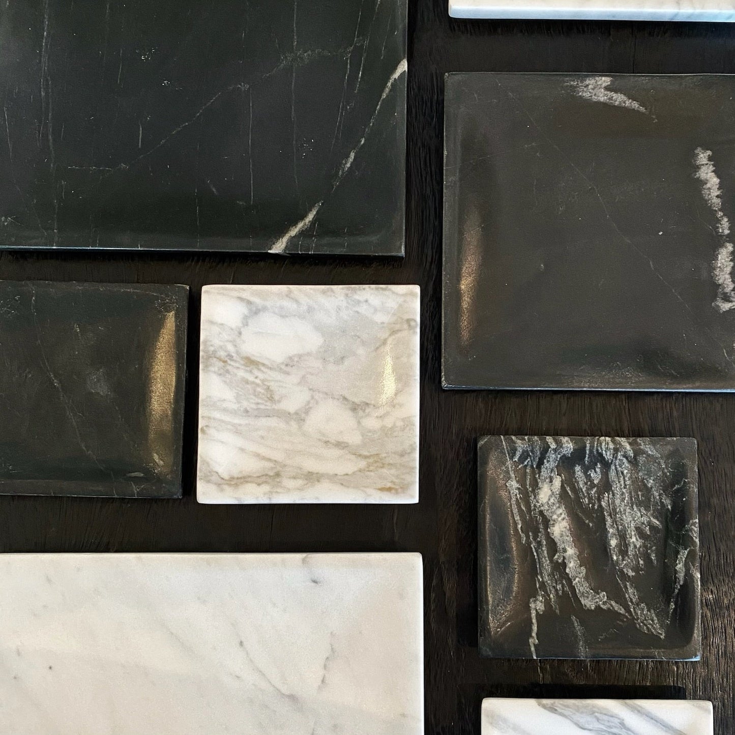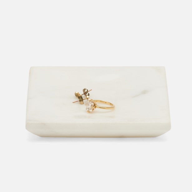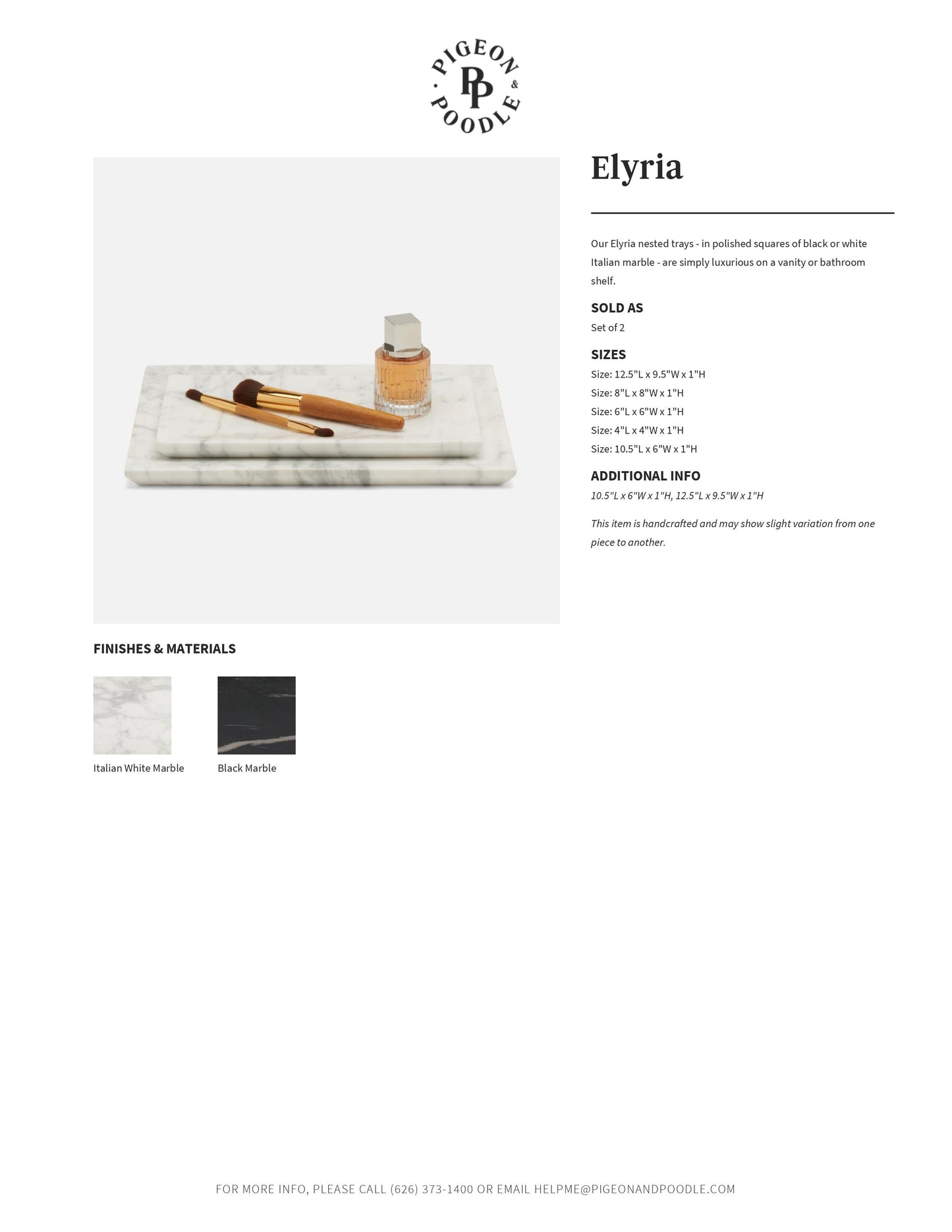 The Elyria White Marble Square Tray Set from Pigeon and Poodle features a square tray in polished squares of white marble. Trays like the Elyria are simply luxurious on a vanity or bathroom shelf. Variation to be expected.
