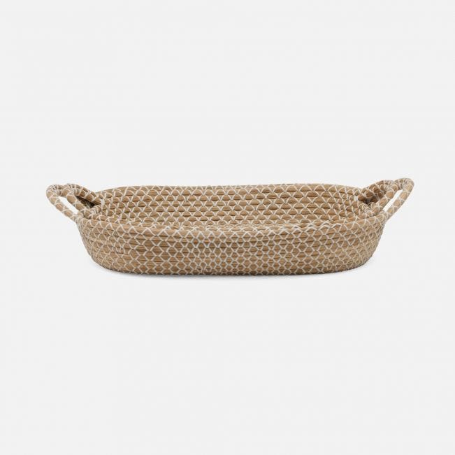 The Low Kendari Basket Set in Natural White Seagrass from Pigeon and Poodle is handmade from coils of natural seagrass and crisscrossed strips of white seagrass. Consider using this versatile set to contain all your necessities in entryways, living spaces, and bedrooms alike.