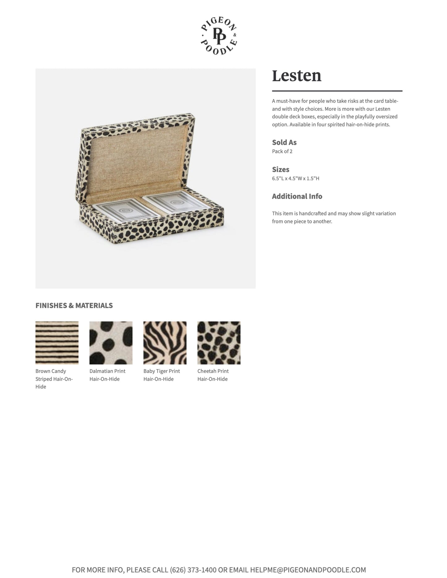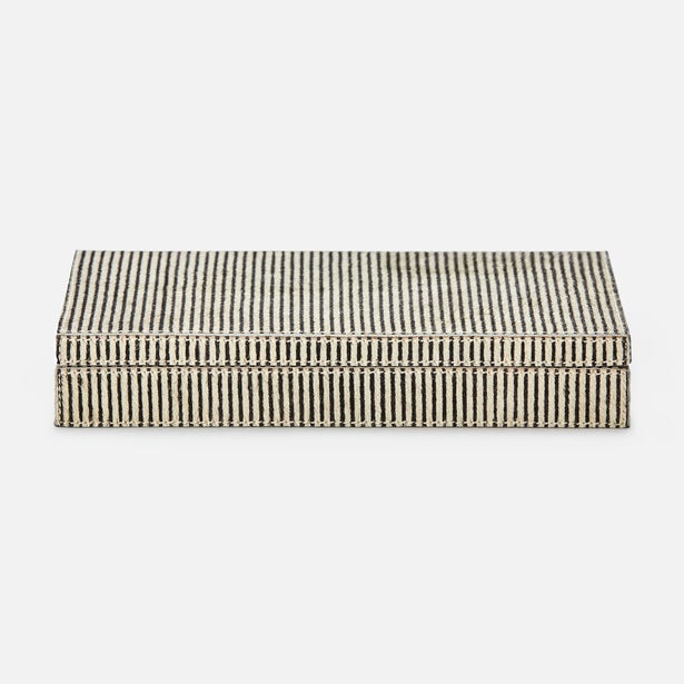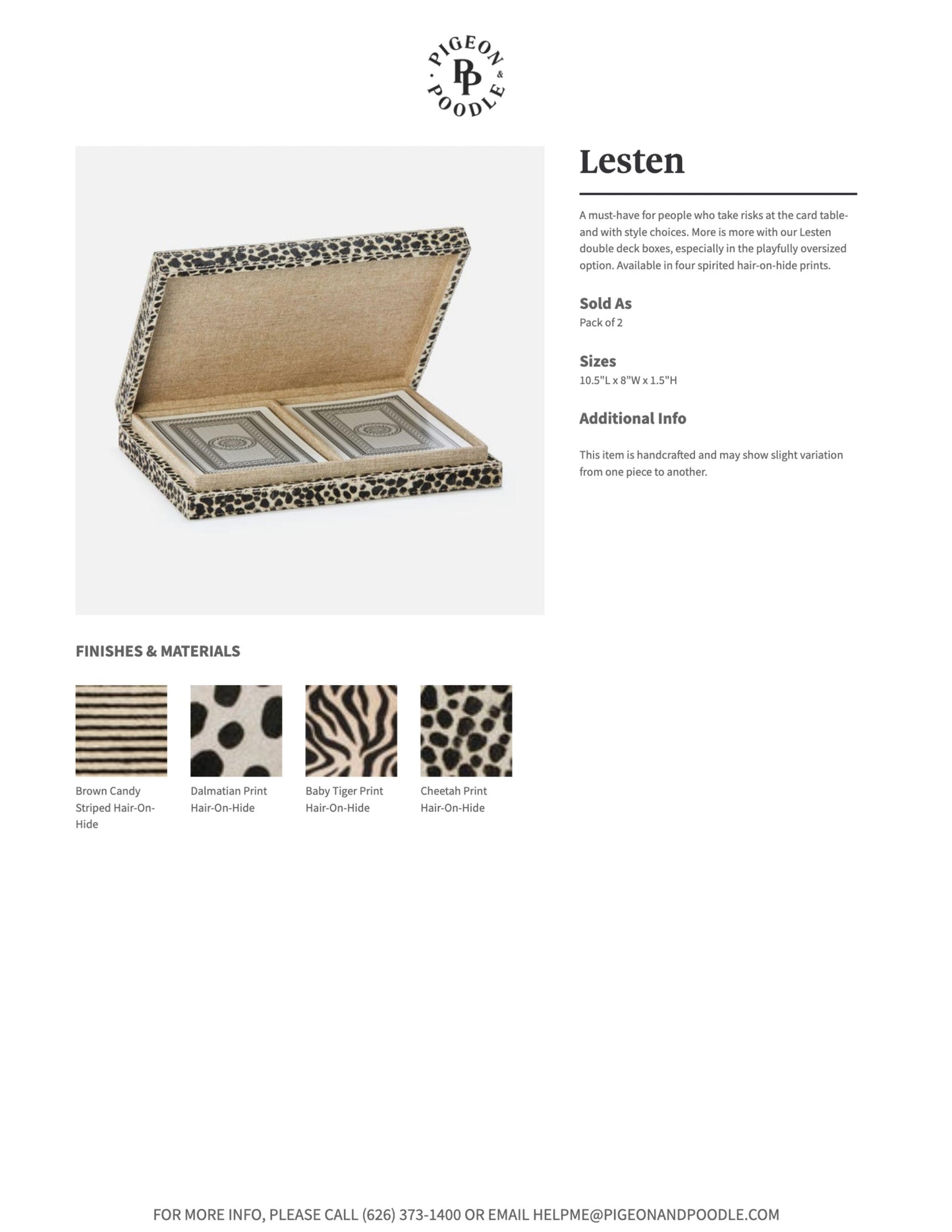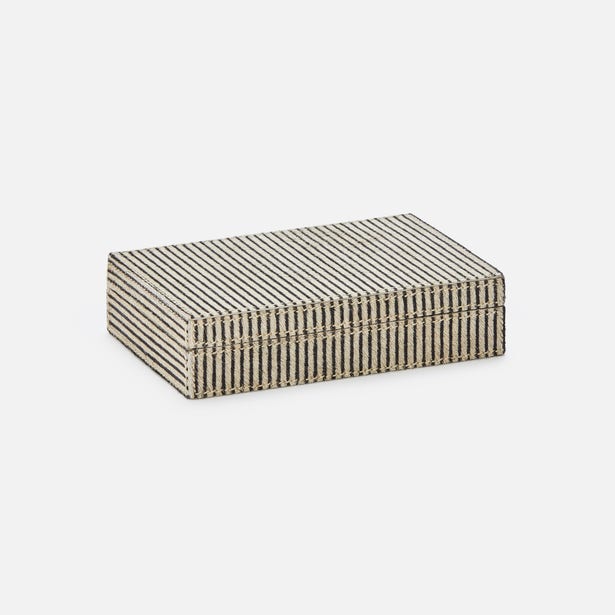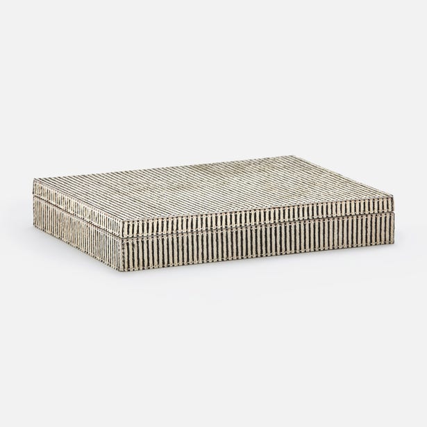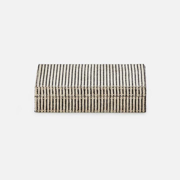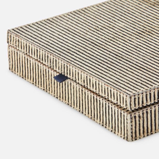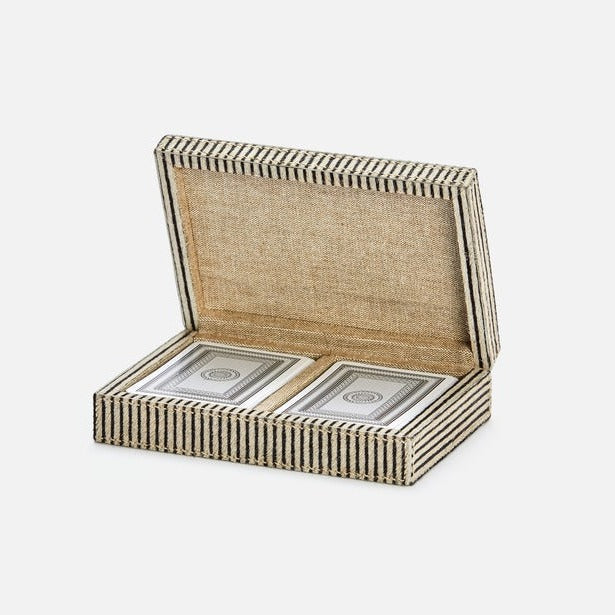 A must-have for people who take risks at the card table-and with style choices. More is more with the Lesten Card Box Set in Brown Candy Striped Hair-on-Hide from Pigeon and Poodle double deck boxes, especially in the playfully oversized option.