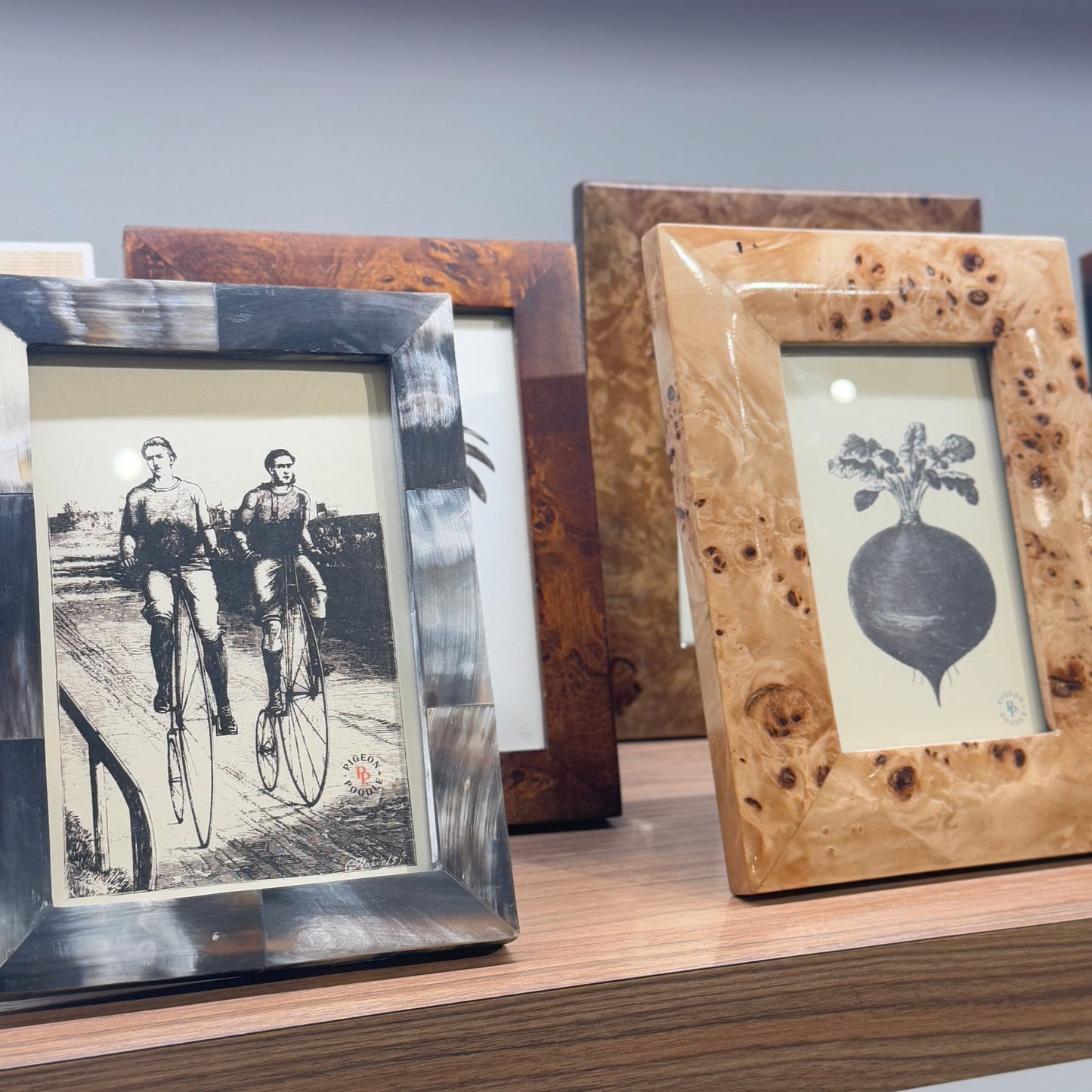 The Pigeon and Poodle Narvik Frame in Burl Maple is masterfully crafted with beautiful burl wood veneer. Perfect for displaying treasured memories on bookshelves, desktops, or tables, this frame is both durable and stylish thanks to its Maple Veneer construction.