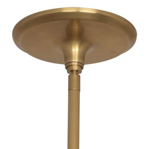 The Apollo Small Pendant in Antique Brass, designed by Robert Abbey, features elegant metallic components and a frosted white glass diffuser. Suspension hardware included: 3 pcs. 5/8" X 12" & 1 pc. 5/8" X 6" extension rods.