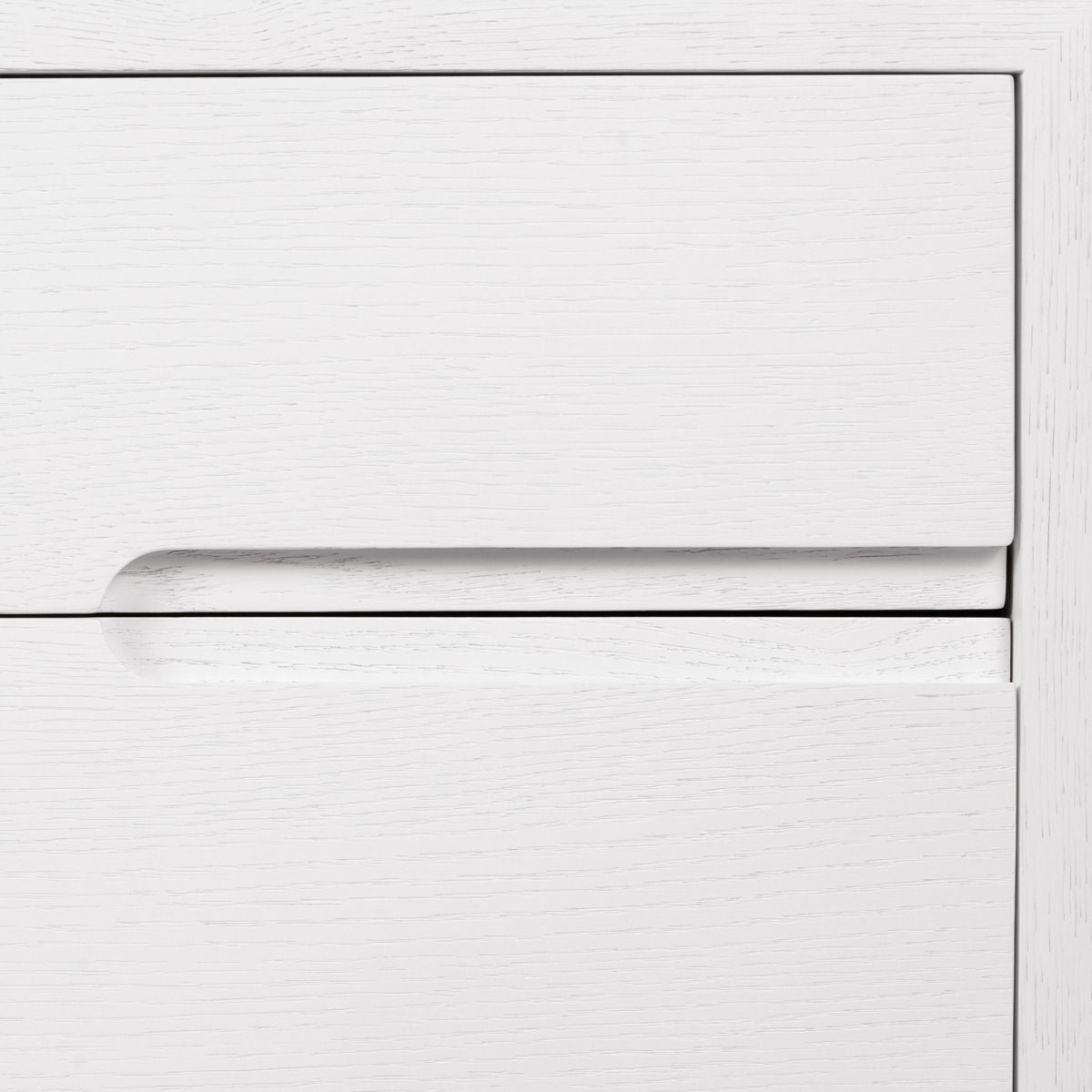 Villa & House's Cora Cabinet Soft White features carefully selected oak and veneers that create a refined, chic look without being overly bold. The cutouts on the front panels serve both as stylish accents and drawer pulls, making them an integral part of the design and function.